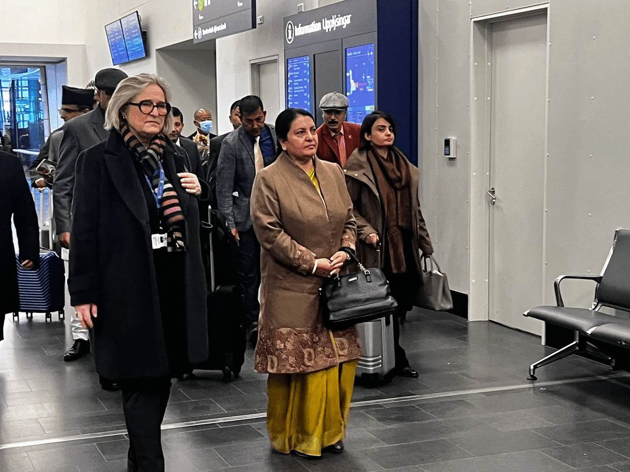 राष्ट्रपति भण्डारीलाई आइसल्यान्डको परराष्ट्र मन्त्रालयका प्रमुख शिष्टाचार महापाल राजदूत एस्ट्रिड ब्रेक्कन र डेनमार्कस्थित नेपाली राजदूतावासका नियोग उपप्रमुख तीर्थराज अर्यालले स्वागत गर्नुभएको सो विज्ञप्तिमा उल्लेख छ ।
