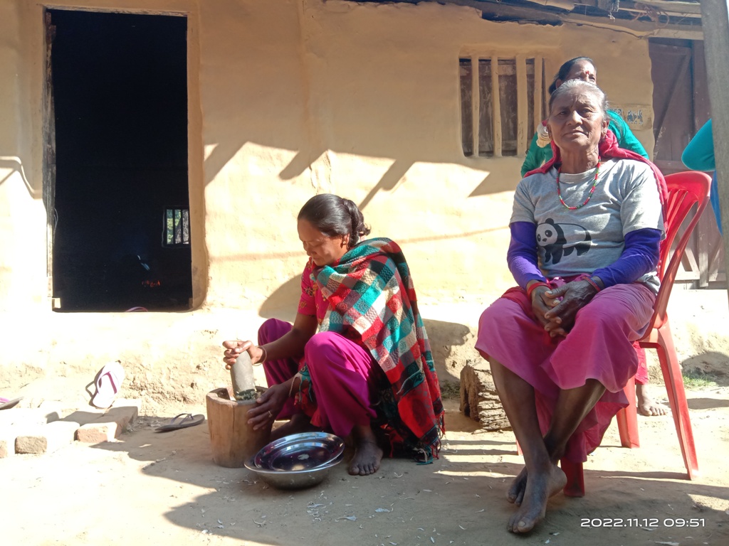कैलालीको टीकापुर नगरपालिका–१ शक्तिनगर शिविरकी बढ्घर चन्द्रा थारू शनिबार परम्परागत डोक्नीमा अचार कुट्दै हुनुहुन्थ्यो । शिविरमा रहेको सार्वजनिक भवनमा उहाँलगायत अन्य स्थानीयवासी खाना पकाउन व्यस्त थिए । उहाँले पकाएको खान भोजभतेरका लागि भने होइन । चन्द्रासँगै थुप्रै महिला र पुरुष खाना पकाउनमा निकै व्यस्त देखिन्थे ।