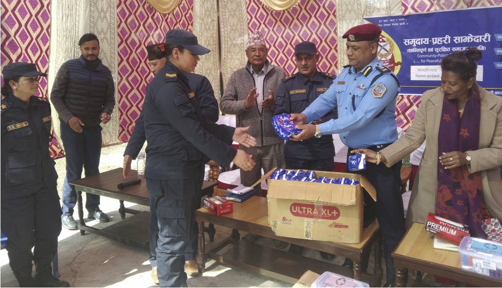 बागलुङमा क्रियाशील आदर्श सञ्चार सहकारी संस्था र नर्वदा टेड्रसको सहयोग तथा जिल्ला प्रहरी कार्यालय र अनौपचारिक क्षेत्र सेवा केन्द्र (इन्सेक) को संयोजनमा जिल्लामा निर्वाचनको सुरक्षामा खटिएका ६७ महिला प्रहरी र दुई सय ६१ म्यादी महिला प्रहरीलाई एक÷एक थान स्यानीटरी प्याड वितरण गरिएको छ ।