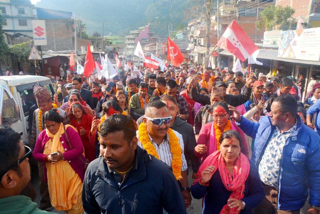 उहाँले निर्वाचनको परिणाम आएदेखि नै आफूहरू मतदातालाई धन्यवाद दिँदै घर–घरमा पुगेको बताउनुभयो । बागलुङमा यही मङ्सिर ७ गते नै प्रत्यक्षतर्फको मतपरिणाम आइसकेको थियो । गठबन्धनका विजयी उम्मेदवारले मङ्सिर ९ देखि १६ गतेसम्म मतदाता धन्यबाद कार्यक्रमको समयतालिका बनाएको भन्दै सोहीअनुसार आफूहरु गाउँ–गाउँमा पुग्ने बताउनुभयो ।
