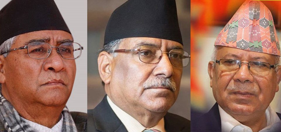 प्रधानमन्त्री एवं नेपाली कांग्रेसका सभापति शेरबहादुर देउवा, नेकपा (माओवादी केन्द्र) का अध्यक्ष पुष्पकमल दाहाल ‘प्रचण्ड’ र नेकपा (एकीकृत समाजवादी)का अध्यक्ष माधवकुमार नेपालबीच आज नयाँ सरकार गठनबारे छलफल भएको छ । प्रधानमन्त्री देउवासँग भएको छुट्टाछुट्टै भेटमा अध्यक्षद्वय दाहाल र नेपालले पाँच दलीय गठबन्धनलाई अझै थप बलियो बनाइ गठबन्धनकै नेतृत्वमा आगामी सरकार गठन गर्नुपर्ने विषयमा छलफल गर्नुभएको प्रधानमन्त्री देउवाका प्रेस प्रमुख गोविन्द परियारले जानकारी दिनुभयो ।