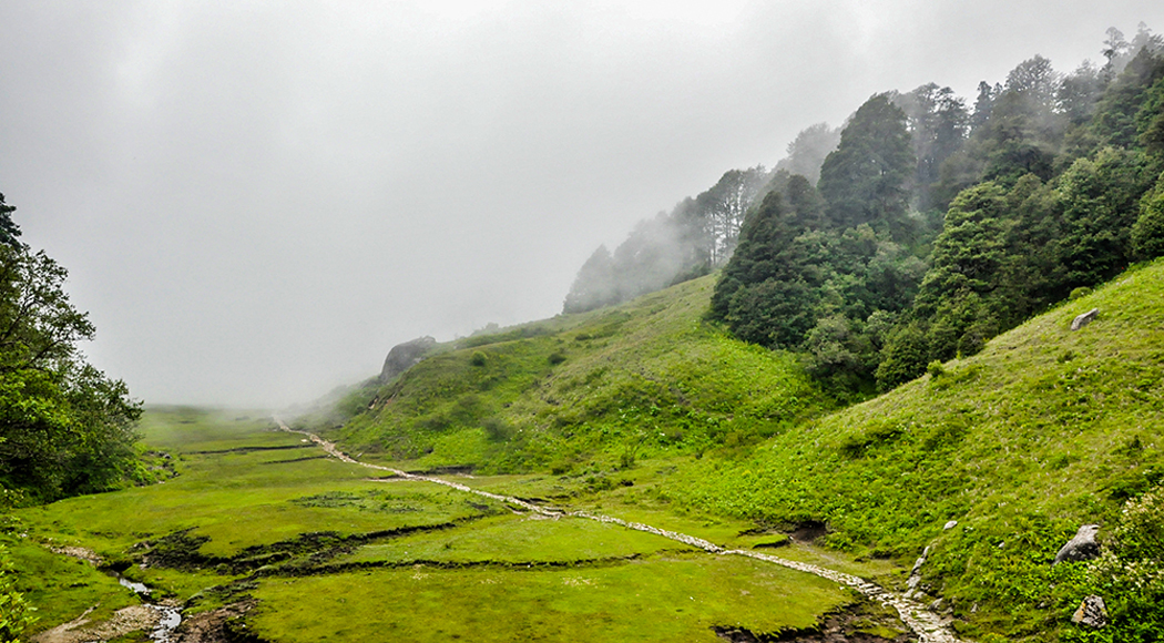 खप्तड पुगेपछि पौडेलको टोलीलाई बास पाउनै हम्मेहम्मे भयो । “खप्तड पर्यटन क्षेत्र विकास समितिले बनाएको भवनमा २०÷२५ जना मात्रै अटाउने रहेछन्”, उहाँले भन्नुभयो, “बाँकी बस्नलाई ठाउँ नै छैन । चिसो बढ्दै गयो । हामी त फर्किने सोचमा थियौँ । पछि पसलवालाले नेपाली सेनासँग आग्रह गरेर उहाँको पाहुना घरमा बस्यौँ ।”