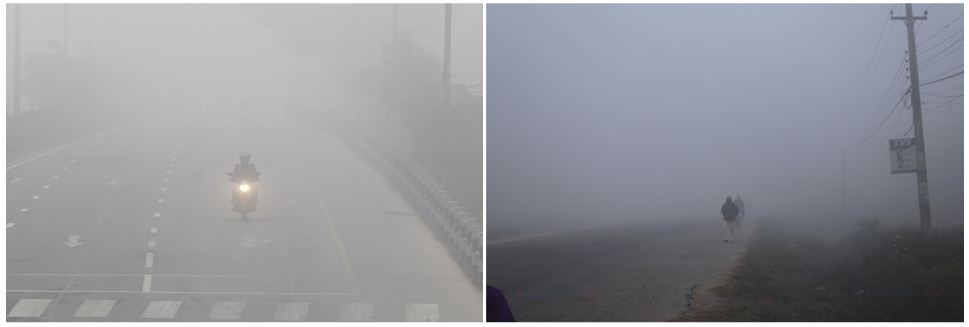 आज बिहानदेखि काठमाडौँ उपत्यकासहित देशका पहाडी तथा तराईका विभिन्न भू-भागमा बाक्लो हुस्सु तथा कुहिरो लागेको छ ।