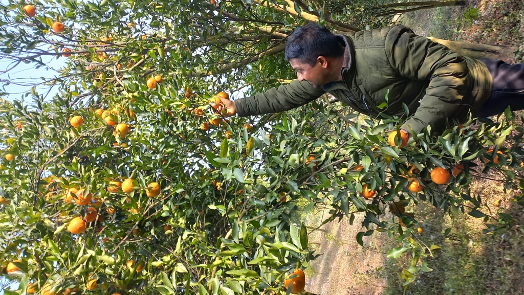 पोखरा महानगरपालिका–२१ फेदीपाटन डाँडाखर्कका कृषक प्रकाश पौडेल यतिखेर निकै खुसी हुनुहुन्छ । घर वरपर लटरम्म पहेंलपुर सुन्तलाले ढाकिएको दृश्यले उत्साहित उहाँ विगतमा मुस्किलले २० मुरी धान फल्ने क्षेत्रमा उत्पादित सुन्तला बेचेरै यस वर्ष ११ लाख रुपैयाँ आम्दानी गर्दा दङ्ग पर्नुभएको छ ।