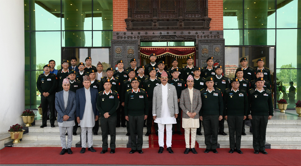 सैनिक मुख्यालय जङ्गी अड्डाको निरीक्षणका क्रममा सम्बोधन गर्दै उहाँले संवैधानिक दायित्व र समयक्रममा सरकारले सुम्पँदै आएको जिम्मेवारी अब्बल ढङ्गबाट पूरा गरी सेना जनताको भरोसाको केन्द्रका रूपमा रहेको उल्लेख गर्नुभयो ।