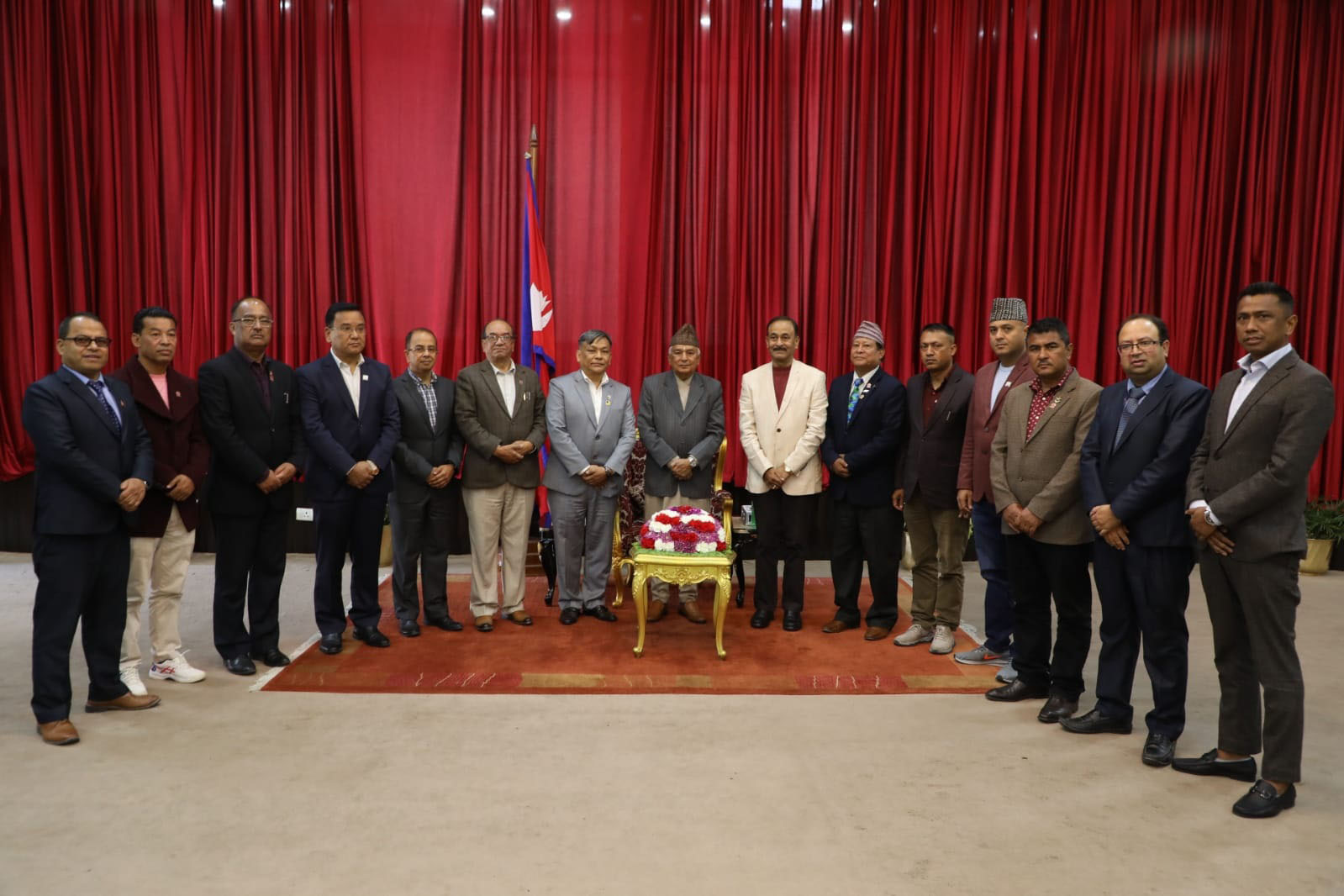 महासङ्घ प्रतिनिमिण्डलमा अध्यक्ष सिंहका साथ महासङ्घका सल्लाहकार यक्षध्वज कार्की, जयराम लामिछाने, बीरेन्द्रराज पाण्डे, निवर्तमान अध्यक्ष विष्णुभाइ श्रेष्ठ, वरिष्ठ उपाध्यक्ष आङ दोर्जी लामा (एडी), उपाध्यक्षद्वय रामजी पन्त ‘मुकेश’, बालकृष्ण थापा, महासचिव रोशन दाहाल, उपमहासचिव (नीतिगत) शिवहरि घिमिरे, कोषाध्यक्ष हीरणकुमार श्रेष्ठ, कार्य समिति सदस्य सुशीलकुमार श्रेष्ठ, कार्यालय प्रमुख प्रेमसिंह ऐर र उपनिर्देशक निर्मल अर्याल सहभागी हुनुहुन्थ्यो ।