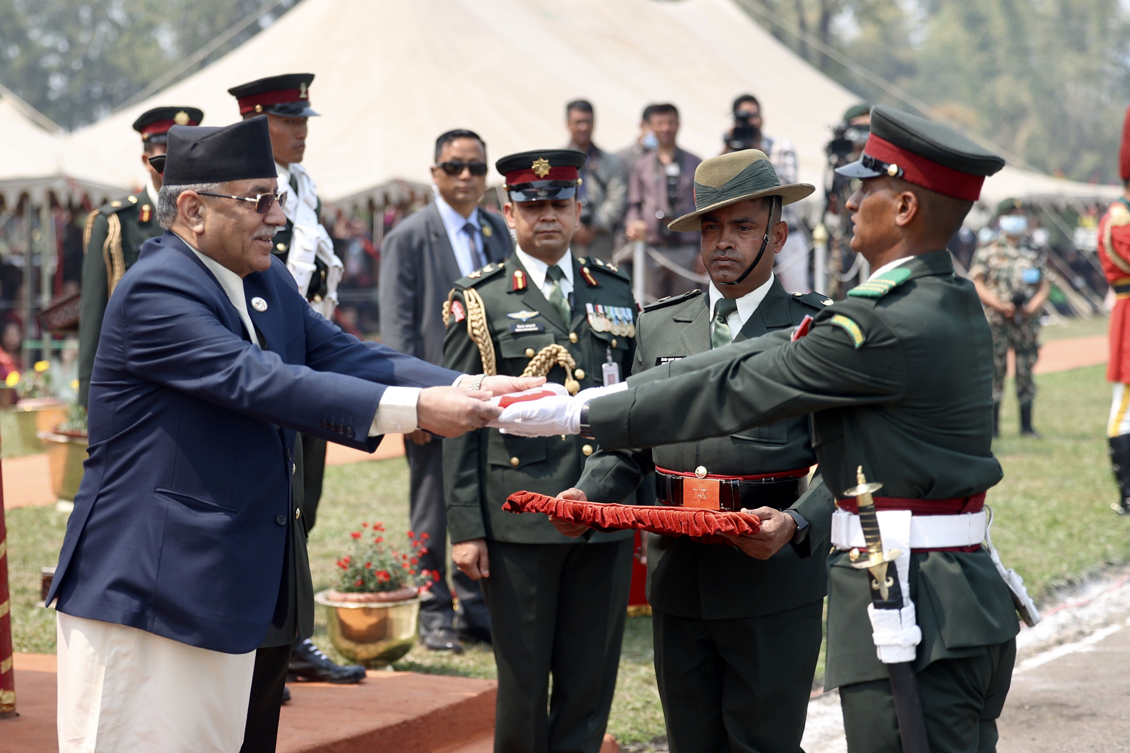प्रधानमन्त्री दाहालले सि.नं ६० अधिकृत क्याडेट तालिममा उत्कृष्ट हुने कृष्ण खड्का र सि.नं ५० पदिक तथा बिल्लादार अधिकृत क्याडेट तालिममा उत्कृष्ट हुने खगेन्द्र कार्कीलाई खुकुरी प्रदान गर्नुभयो । त्यस्तै, महिलातर्फ उत्कृष्ट हुने अप्सरा बुढाथोकीलाई छडी अवार्ड प्रदान गर्नुभयो ।