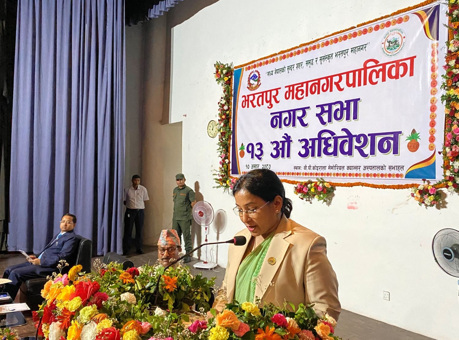 चितवन । भरतपुर महानगरपालिकालाई हरियाली र स्वच्छ सहर बनाइने भएको छ । महानगरपालिकाको आज भएको १३औँ नगरसभामा नगर प्रमुख रेनु दाहालले नीति तथा कार्यक्रम प्रस्तुत गर्दै ‘हाम्रो सहर, हरियाली तथा स्वच्छ सहर’ अवधारणालाई अघि बढाइने बताउनुभएको हो ।