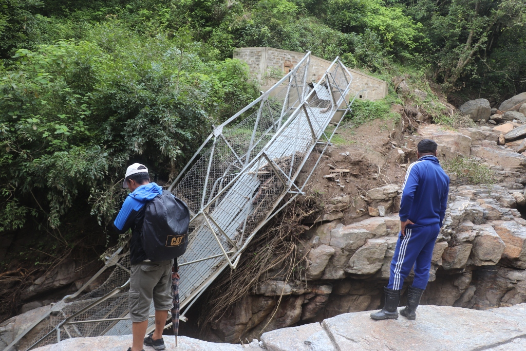 भोजपुर, ६ भदौ (रासस): टेम्केमैयुङ गाउँपालिका–९ स्थित राउतेखोलाको झोलुङ्गे पुल बाढीले बगाएपछि स्थानीयलाई समस्या भएको छ । एक गाउँबाट अर्को गाउँ जोड्ने पुल बाढीले बगाएसँगै स्थानीयको जनजीवन कष्टकर बनेको हो ।