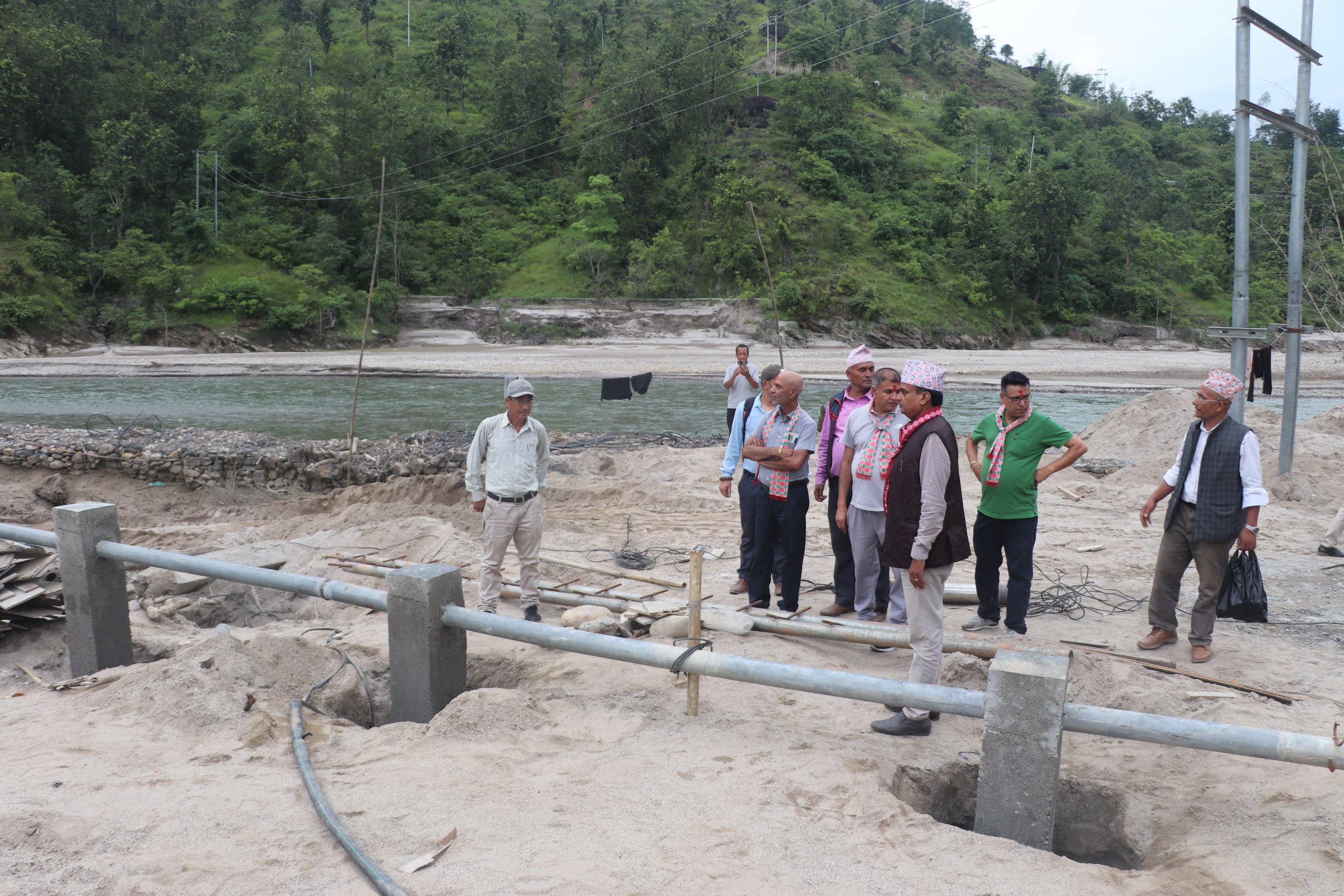 उपभोक्तालाई चाँडो पानी खुवाउने उद्देश्यले बाढीले क्षति गरेर पुनःनिर्माण थालिएको आयोजनाको कोशी प्रदेशका खानेपानी सिँचाइ तथा ऊर्जा मन्त्रालयका सचिव अरुणकुमार झा, मन्त्रालयका महाशाखा प्रमुख मेघराज ज्ञावली, प्रशासन महाशाखा प्रमुख सञ्जयकुमार पोखरेलसहित डिभिजन प्रमुख देवनाथ सिंहले स्थलगत अनुगमन गर्नुभएको छ ।