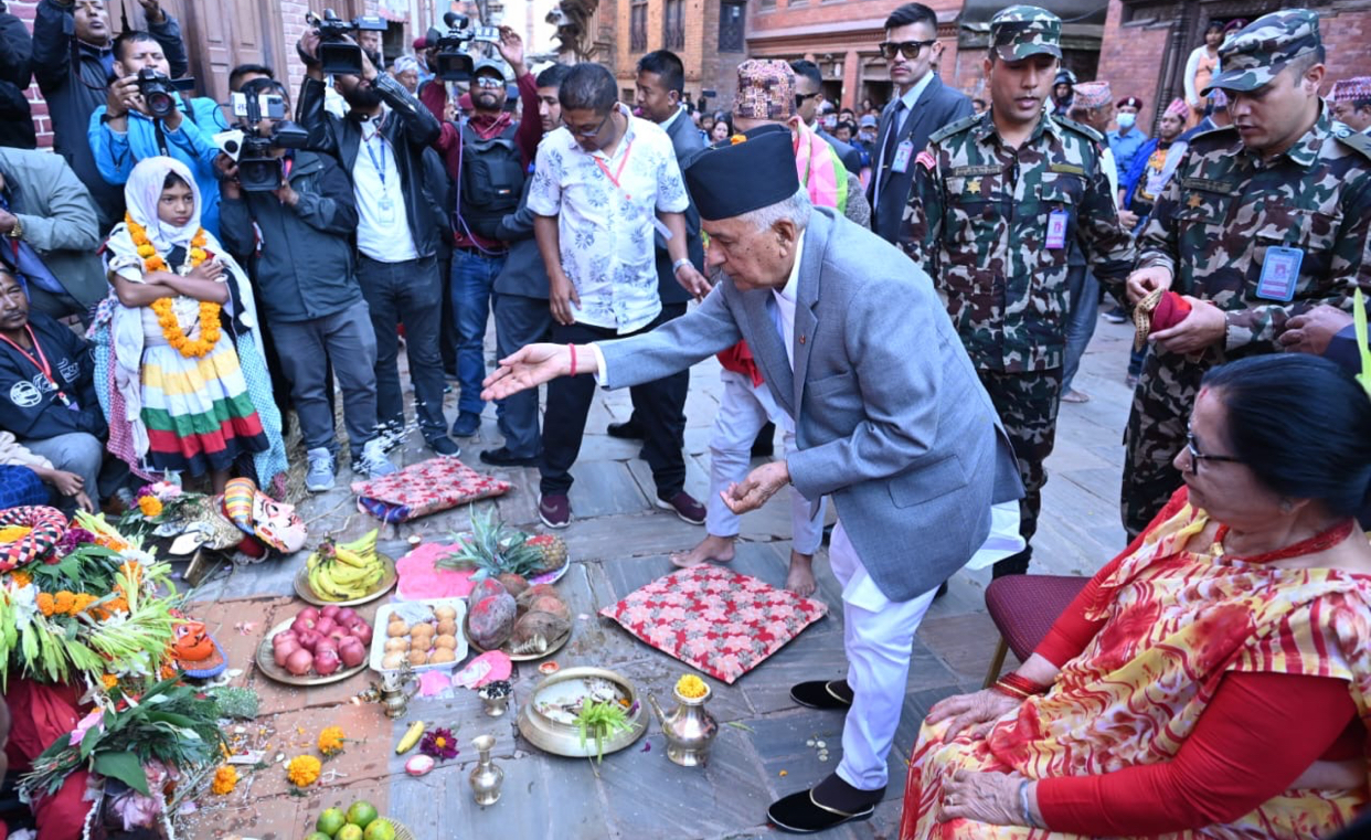 राष्ट्रपतिले नवदुर्गालाई ८४ व्यञ्जन अर्पण गर्दै विशेष पूजा गर्नुभयो । साथै उहाँले नवदुर्गा नाचसमेत अवलोकन गर्नुभएको छ । राष्ट्रपति पौडेललाई रमेश कर्माचार्यले नवदुर्गाको सङ्कल्प पूजा गराउनुभएको थियो ।