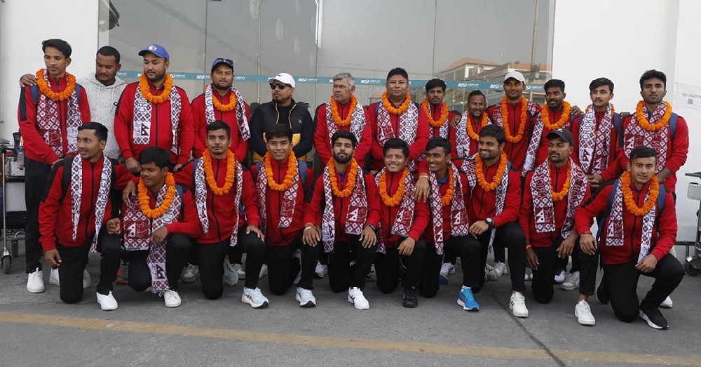 काठमाडौं, माघ २२ गते । दक्षिण अफ्रिकामा भएको एक दिवसीय क्रिकेटमा सहभागी भई नेपाली यु-१९ राष्ट्रिय क्रिकेट टोली स्वदेश फर्किएको छ । सोमबार त्रिभुवन अन्तर्राष्ट्रिय विमानस्थल हुँदै टोली स्वदेश फर्किएको हो ।