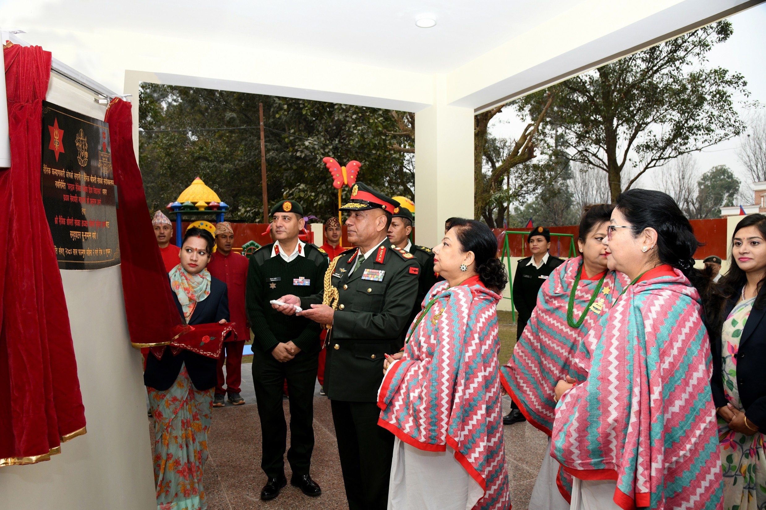 आज आयोजित समुद्घाटन समारोहलाई सम्बोधन गर्दै प्रधान सेनापतिले परोपकारका क्षेत्रमा क्रियाशील सैनिक श्रीमती संघको पहलतामा निर्मित यस विद्यालय बहालवाला र अवकाश प्राप्त सैनिक व्यक्तिहरूका विशेष क्षमता भएका सन्ततीहरूको शिक्षा र जीवनोपयोगी क्षमता विकाशमा महत्त्वपूर्ण सावित हुने विश्वास व्यक्त गर्नुभयो ।