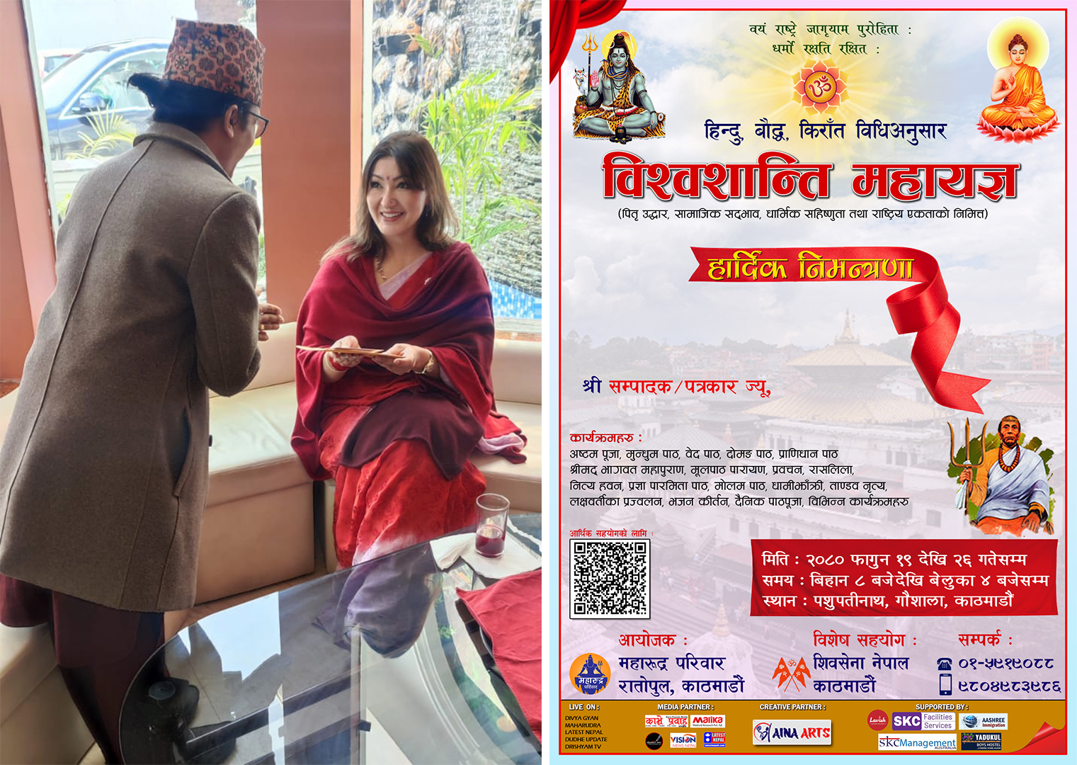 यस महायज्ञलाई शिवसेना नेपालले विशेष साथ दिएको छ । नेपालबाट युवाहरु दैनिक विदेश पलायन भईरहेको समयमा केही युवाहरुले यस्तो विशेष कार्यक्रम आयोजना गर्न लागेको देखेर आफुले साथ दिएको शिवसेना नेपालको केन्द्रीय अध्यक्ष अनिल बस्नेत (अनिल बाबा) बताउँछन् । यो महायज्ञ विश्व र नेपालको सन्दर्भमा आजको समयमा अति नै आवश्यक रहेको छ । यसले धार्मिक सद्भाव, सहिष्णुता र एकतालाई बचाईराख्ने मात्रै नभई विश्वमै राष्ट्रिय गौरव बढाउने भएकाले यस्तो कार्यक्रमलाई नेपाल सरकारले नै आयोजना र सहयोग गर्नुपर्ने बताए । यो पवित्र र महत्वपूर्ण कार्यक्रममा सबैले सहयोग गरेर साथ दिनुपर्ने उहाँको भनाई छ ।