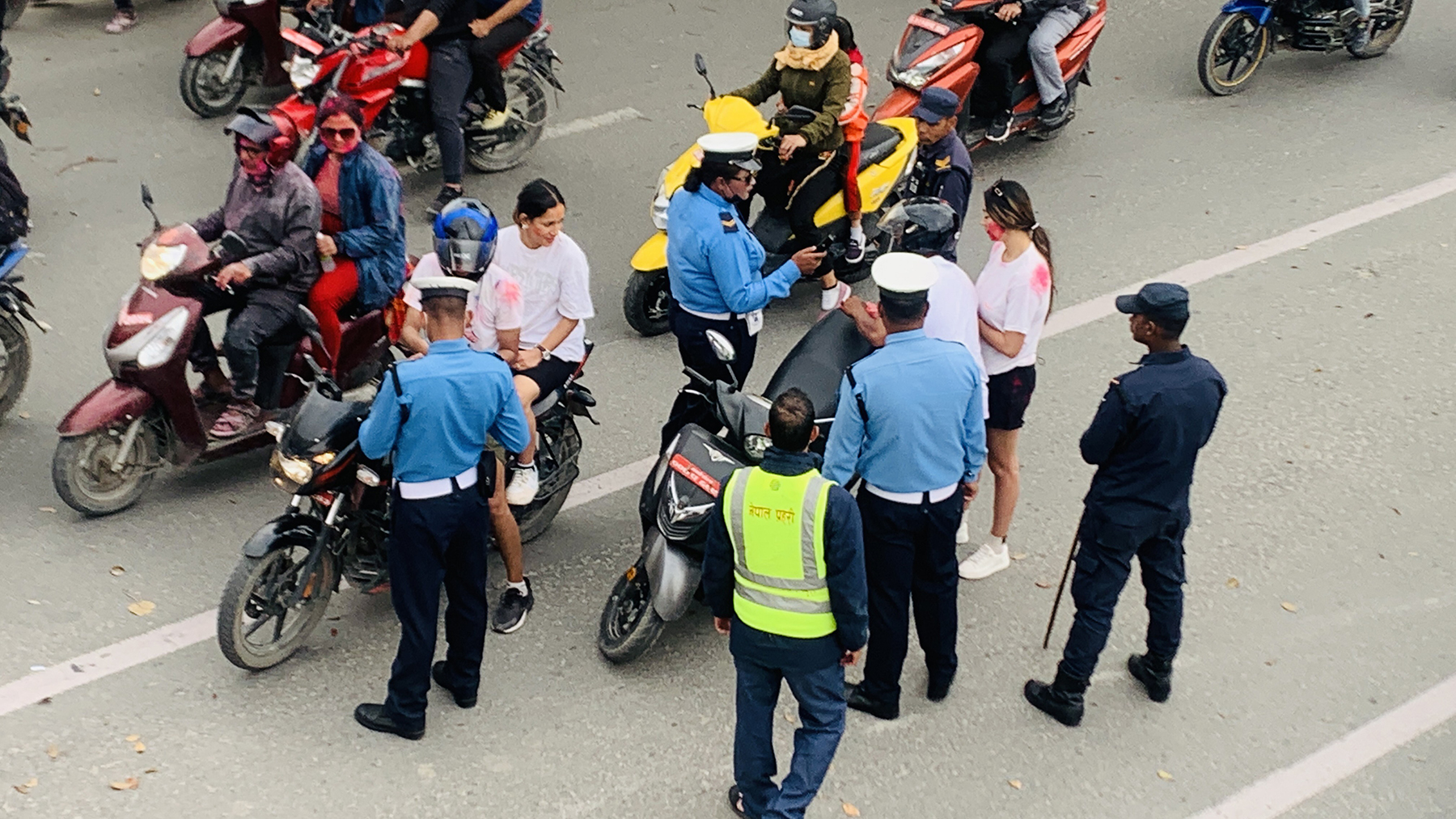 जिल्ला प्रहरी परिसर काठमाडौंको टोलीले दुईपाङ्ग्रे सवारी तीन सयवटा र चारपाङ्ग्रे सातवटा सवारीसाधनलई नियन्त्रणमा लिई ट्राफिक प्रहरीको जिम्मा लगाइएको छ । लापसे, मापसे गरी सवारीसाधन चलाउने तथा कागजपत्र नबोक्ने, हेल्मेट नलगाई सवारी चलाएको अभियोगमा सवारीसाधन नियन्त्रणमा लिइएको हो ।