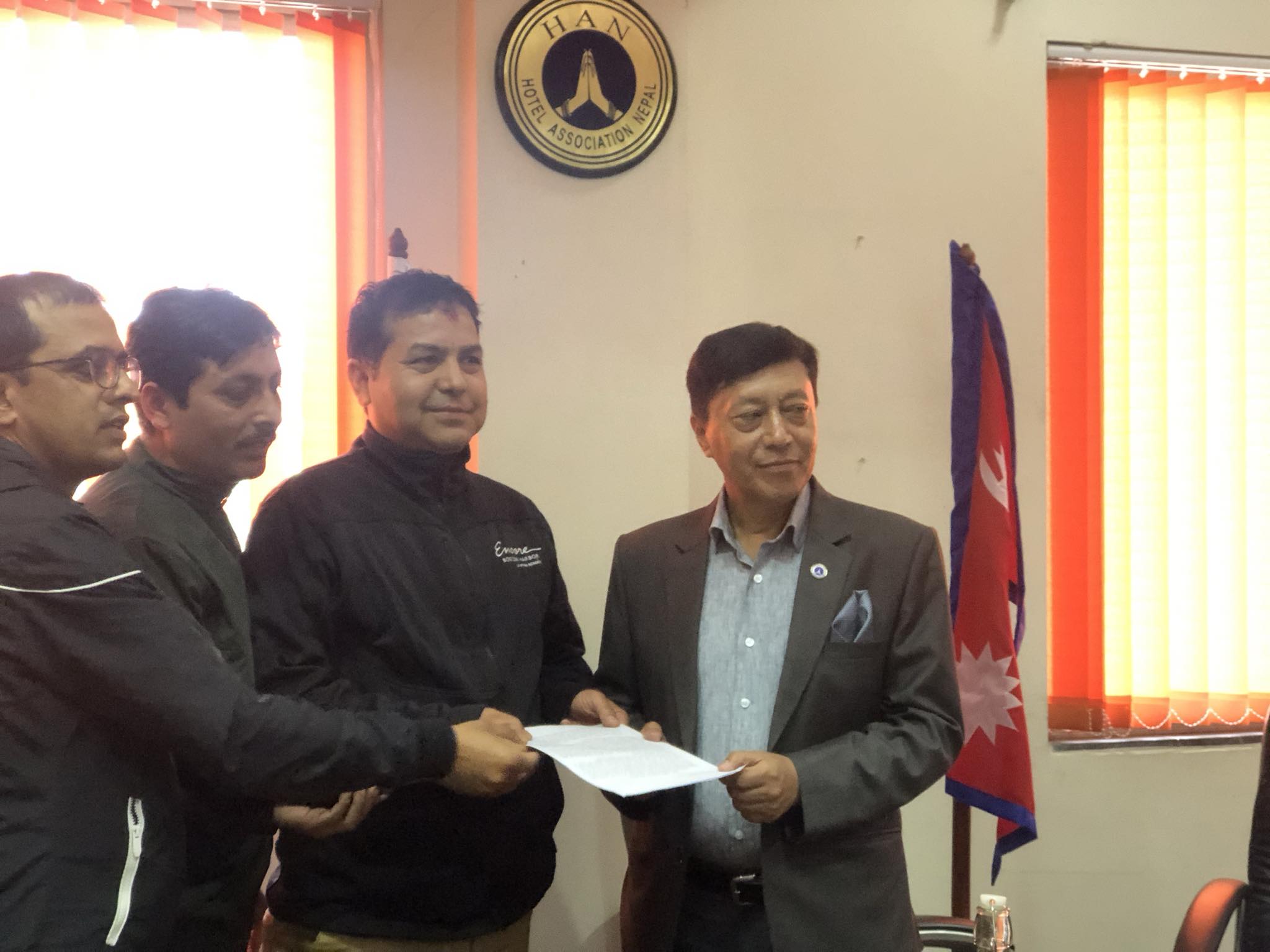 पहिलो चरणमा होटेल सङ्घ नेपाललाई छ बुँदे माग दाबी सहित ज्ञापन पत्र बुझाएका छौँ र यसको सवालमा सुनुवाइ नभएमा होटेल तथा मजदुर श्रमिकहरूले देश भर आन्दोलनको घोषण गर्नु समेत उहाँले जानकारी दिनुभयो ।