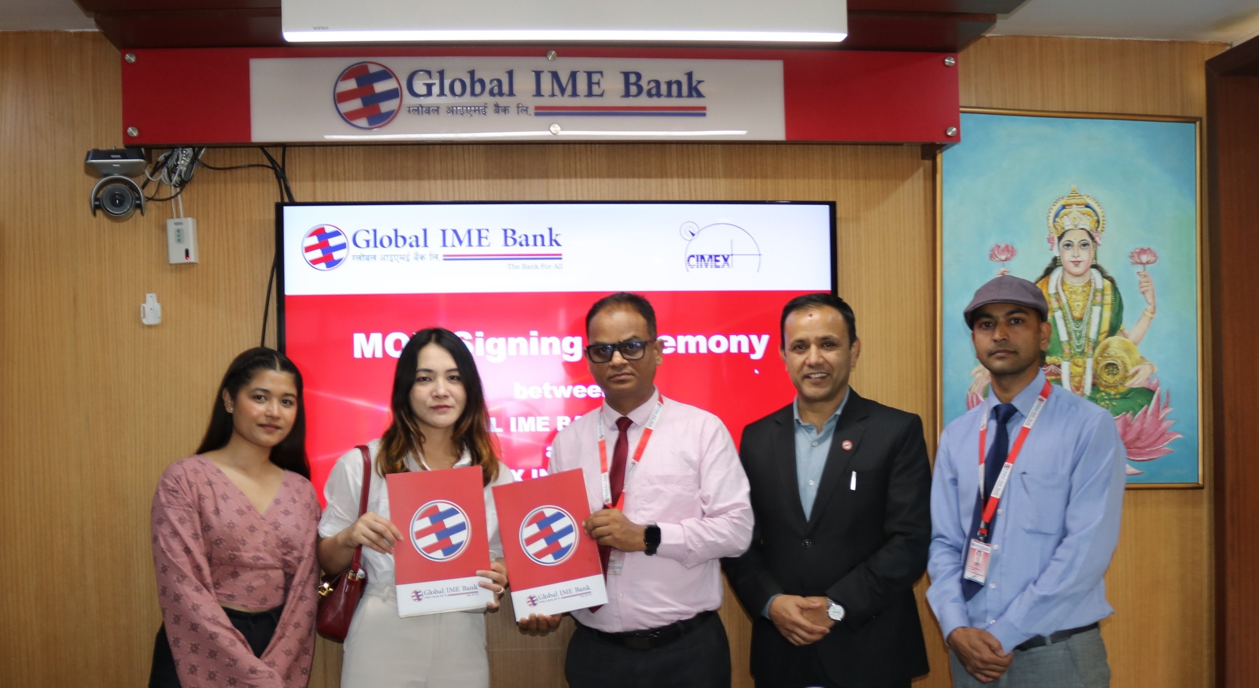 काठमाडौं: ग्लोबल आइएमई बैंक लिमिटेड र सिमेक्स इंक प्रा.लि बीच सहजरुपमा विद्युतीय सवारी कर्जा प्रवाह गर्ने समझदारी पत्रमा हस्ताक्षर भएको छ।