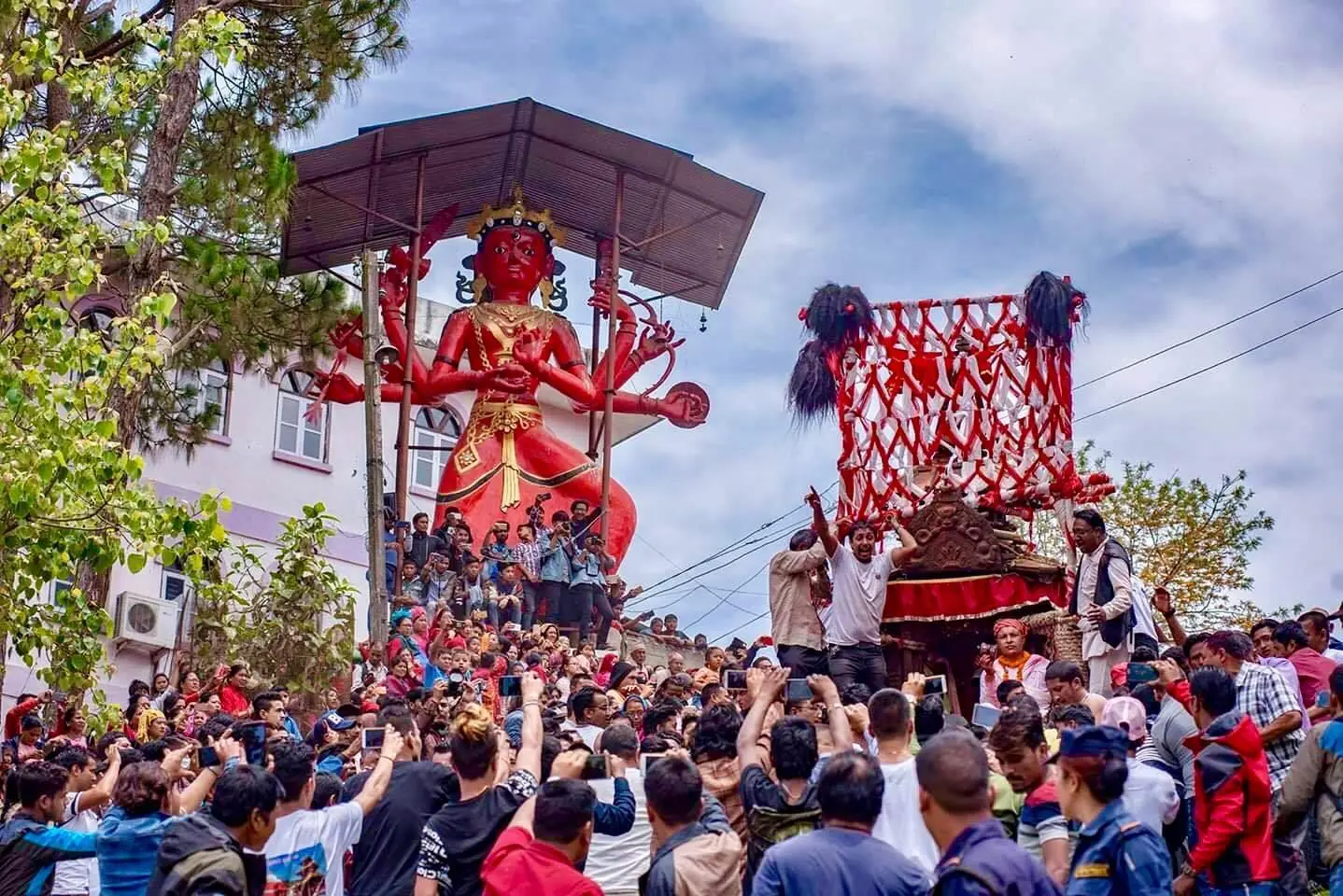 रथ मन्दिर लैजाने बेला रथ तान्ने र घचेट्नेको उत्साहमा थप उर्जा प्रदान गर्दै बजारका हरेक घरका झ्यालबाट उनीहरुलाई ‘ल्हाका पालुं हाः’ भन्दै साहस थपिदिने काम पनि हुन्छ । खटलाई मन्दिर नजिक पु¥याएपछि विधिपूर्वक पूजा गरी चण्डेश्वरी देवीको मूर्तिलाई खटमा राखिन्छ । यस्तै रथ बोकेर फर्कने क्रममा हरेक घरमा तयार पारिएका प्रसाद झ्यालबाटै रथमा बसेकी चण्डेश्वरीलाई चढाउँछन् ।