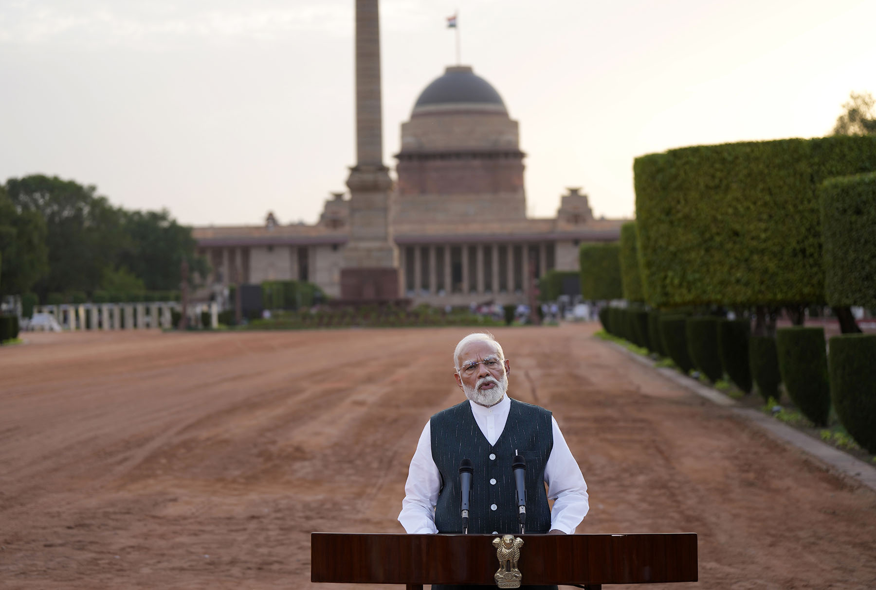 भारतको लोक सभा निर्वाचनमा नवनिर्वाचित भारतीय जनता पार्टी (भाजपा) नेता तथा कार्यबाहक प्रधानमन्त्री नरेन्द्र मोदीले आइतबार राष्ट्रपति भवनमा आयोजित एक भव्य समारोहमा लगातार तेस्रो कार्यकालका लागि भारतको प्रधानमन्त्रीका रुपमा सपथ लिनुभएको छ ।