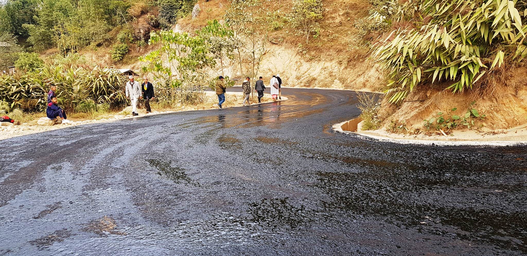सडकको अप्ठ्यारो भूभागमा आठ सय मिटर पक्की ढलाइ गरिएको छ । डिबिएसटी (डबल बिटुमिन एस ट्रिटमेन्ट) प्रविधिको कालोपत्र गरिएको हो । सडक कालोपत्रबाहेक किलोमिटर पोष्ट, सेफ्टी बारलगायतको कामसमेत गरिएको छ ।