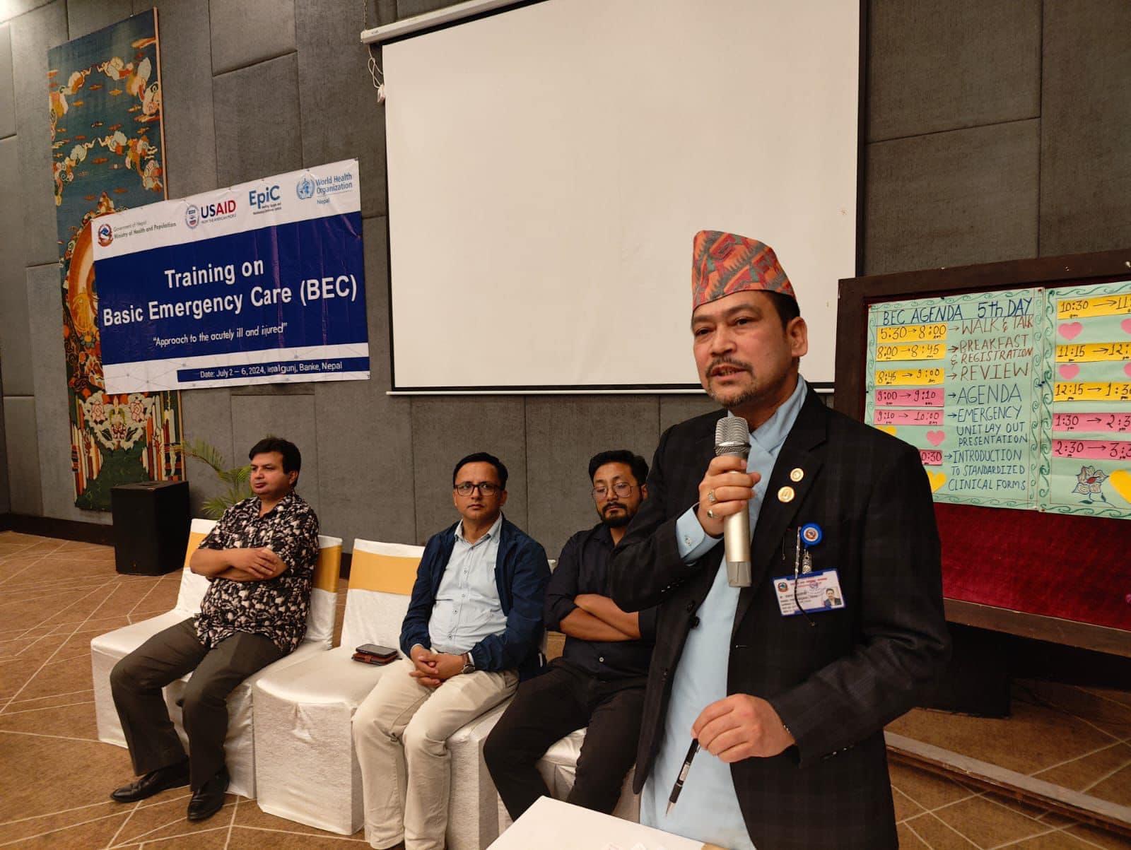 बाँके : स्वास्थ्य सस्थामा मृत्युदर न्यून गर्न चिकित्सक तथा स्वास्थ्यकर्मीलाई ‘आकस्मिक आधारभूत स्वास्थ्य सेवा’ सम्बन्धी तालिम प्रदान गरिएको छ । प्रभावकारी स्वास्थ्य सेवा व्यवस्थापन गरी स्वास्थ्य सस्थामा मृत्युदर घटाउन स्वास्थ्य तथा जनसङ्ख्या मन्त्रालयले लुम्बिनी, कर्णाली र सुदूरपश्चिम प्रदेशअन्तर्गत १२ जिल्लाका २४ जना अस्पतालका चिकित्सक, नर्स, स्वास्थ्यकर्मीलाई पाँचदिने तालिम प्रदान गरेको हो ।