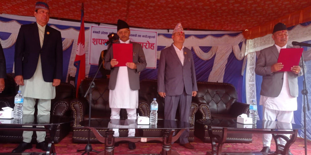 शपथ ग्रहण समारोहमा बागमती प्रदेशका सभामुख भुवनकुमार पाठक, उपसभामुख अप्सरा चापागार्इं र निवर्तमान मुख्यमन्त्री शालिकराम जम्कट्टेल उपस्थित हुनुुहुन्थ्यो ।