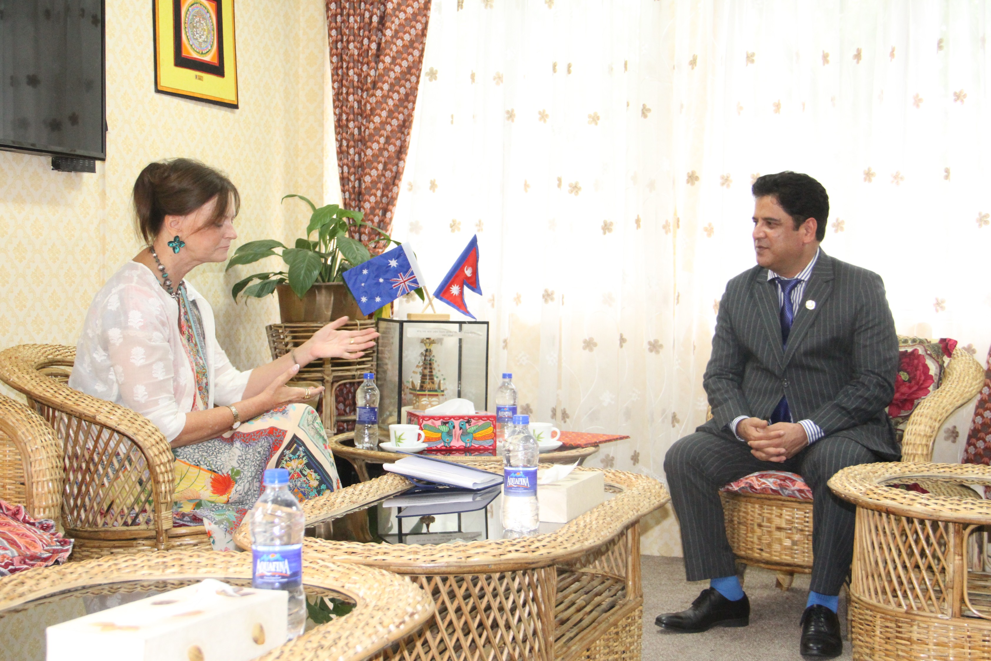 “नेपालको सन् २०२६ मा अतिकम विकसित मुलुकबाट विकासशील मुलुकमा हुने स्तरोन्नतिलाई सहज, दिगो र अपरिवर्तनीय बनाउन र नेपालले दिगो विकासका लक्ष्य प्राप्तिका लागि थप स्रोत, प्रविधि तथा साझेदारी आवश्यक छ”, मन्त्री भण्डारीले भन्नुभयो, “यस सन्दर्भमा व्यापार, लगानी तथा पर्यटनलगायत क्षेत्रमा नेपालले अष्ट्रेलियाबाट थप सहयोगको अपेक्षा गरेको छ, अष्ट्रेलियामा रहेर महामहिमले यस क्षेत्रमा सहयोग पु¥याउनु हुनेछ भन्ने विश्वास लिएको छु ।”