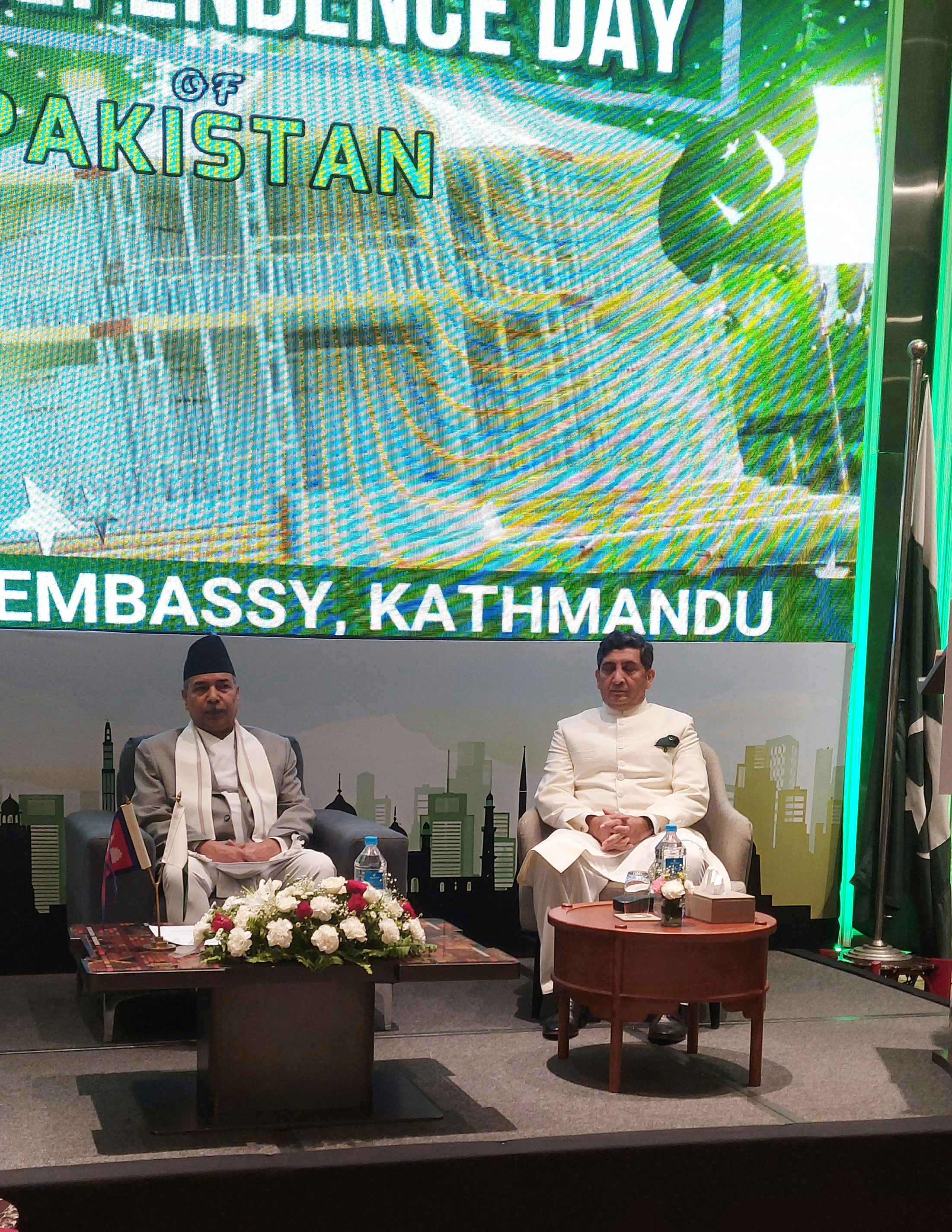 पाकिस्तानको ७८ औँ स्वतन्त्रता दिवसका अवसरमा उपराष्ट्रपति रामसहायप्रसाद यादवको प्रमुख आतिथ्यमा बुधबार साँझ यहाँ आयोजित स्वागत समारोहमा उहाँले नेपाललाई पाकिस्तानले निरन्तर सहयोग गर्ने बताउनुभयो ।