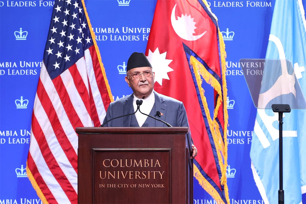 संयुक्त राष्ट्रसङ्घको ७९औँ महासभामा भाग लिन नेपाली प्रतिनिधिमण्डलको नेतृत्व गर्दै संयुक्त राज्य अमेरिकाको न्युयोर्कमा रहनुभएका प्रधानमन्त्री ओलीले सोमबार कोलम्बिया विश्वविद्यालयद्वारा आयोजित वल्ड लिडर्स फोरममा गरिबी निवारण गरी सबैलाई सम्मानजनक रूपमा बाँच्न पाउने अधिकार दिलाउन समृद्ध नेपाल सुखी नेपालीको राष्ट्रिय आकाङ्क्षा अघि सारिएको स्पष्ट पार्नुभयो ।