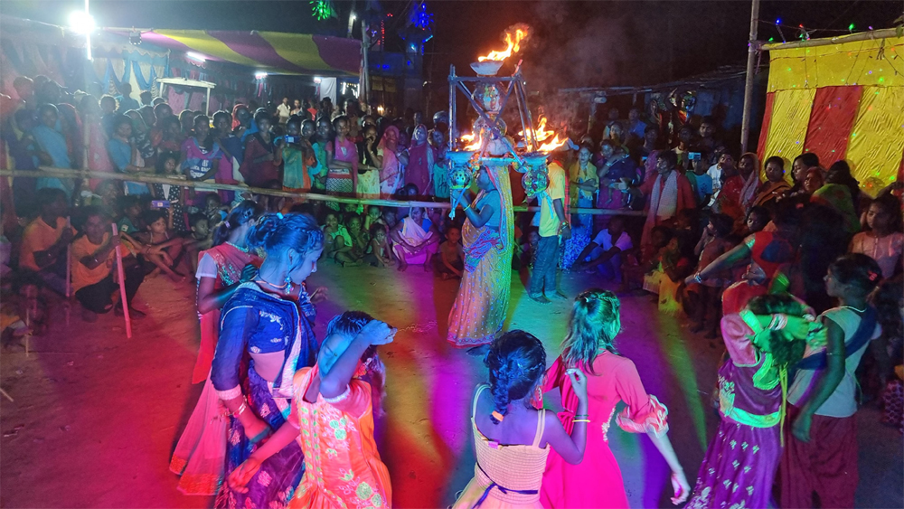 यसरी मन्त्रिएपछि पाँचदेखि १५ जनासम्मका महिला टोलीमध्ये एक वा दुई महिला टाउकामा आगो बलिरहेको घैँटो राखेर बिना हातको सहारा लिई नाच्दै ब्रह्मस्थानमा पुगेर सबैभन्दा पहिले पूजा गरेर नृत्य गर्ने गर्दछन् । ब्रह्मस्थानमा नृत्य गरेलगत्तै झिझियाको औपचारिक रूपमा सुरु हुन्छ । त्यसपछि घरघरमा गएर नृत्य देखाउने परम्परा रहेको छ ।