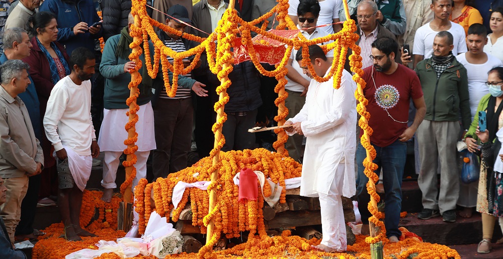 काठमाडौँ : पूर्वसभामुख दमननाथ ढुङ्गानाको पशुपतिनाथस्थित आर्यघाटमा राजकीय सम्मानका साथ अन्त्येष्टि गरिएको छ । त्यस अवसरमा नेपाली सेनाको एक टुकडीले दिवंगत ढुङ्गानाको सम्मानमा सलामी अर्पण गरेको थियो । ढुङ्गानाको पार्थिव शरीरमा उहाँका छोराहरुले दागबत्ती दिनुभयो ।