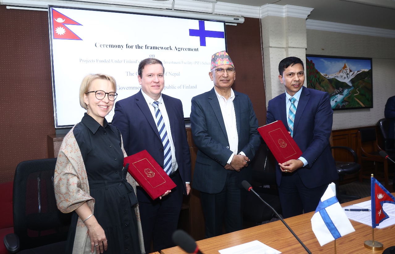 अर्थ मन्त्रालयमा उहाँहरुबीच भएको भेटवार्ताका क्रममा नेपाल र फिनल्याण्ड सरकारबीच सार्वजनिक लगानी परिचालन परियोजनासम्बन्धी खाका सम्झौतामा हस्ताक्षर भएको मन्त्रालयले जनाएको छ । फिनल्याण्डको सार्वजनिक लगानी सुविधा योजनाअन्तर्गत वित्त परिचालन हुने परियोजनाको सम्झौतापत्रमा अर्थ मन्त्रालयका अन्तर्राष्ट्रिय आर्थिक सहायता समन्वय महाशाखा प्रमुख धनीराम शर्मा र नेपालका लागि फिनल्याण्डका राजदूत रीना रिक्का हेइकाले हस्ताक्षर गर्नुभएको हो ।