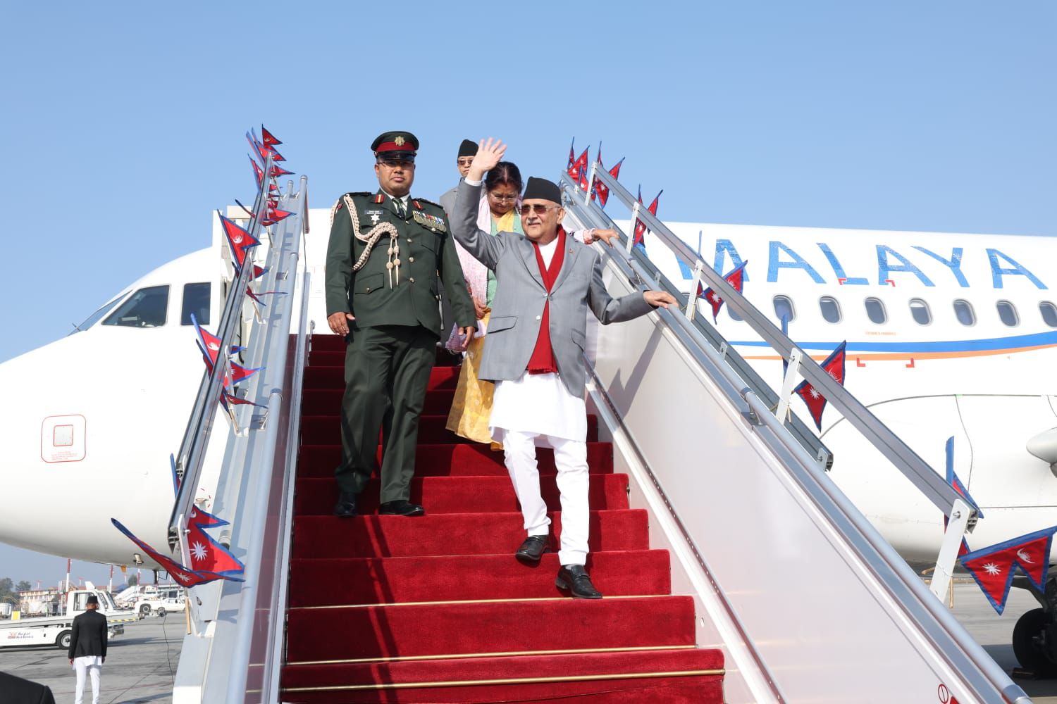 काठमाडौँ: प्रधानमन्त्री केपी शर्मा ओली जनवादी गणतन्त्र चीनको चारदिने औपचारिक भ्रमण सकेर आज स्वदेश फर्किनुभएको छ ।