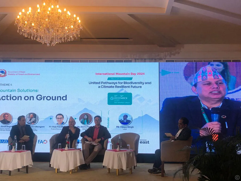 “जलवायु परिवर्तनको बढी जोखिम पर्वतीय क्षेत्रमा परिरहेको छ, यसले हिमालको हिउँ पग्लिरहेको छ, हिमताल फुट्ने तथा हिमपहिरोको जोखिम छ”, उहाँले भन्नुभयो, “यी र यस्ता समस्या समाधान गर्न वन तथा वातावरण मन्त्रालय एक्लैले सम्भव छैन । अन्य सरकारी निकाय, दातृ निकाय, प्रदेश तथा स्थानीय सरकार र अन्य सरोकार भएका निकायहरूको पनि सहयोग जरुरी छ ।”