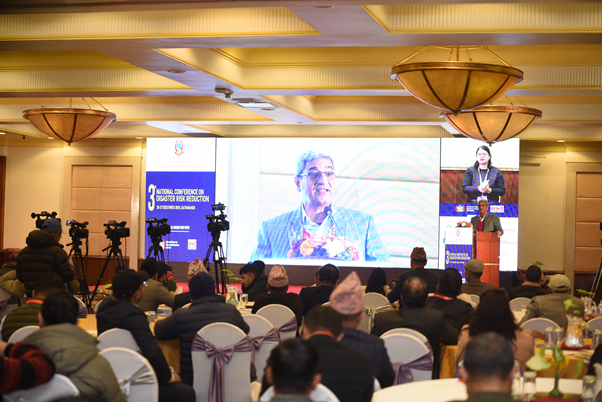 राष्ट्रिय विपद् जोखिम न्यूनीकरण तथा व्यवस्थापन प्राधिकरण र प्रकोप पूर्वतयारी सञ्जाल, नेपाल (डिपिनेट) द्वारा आज यहाँ आयोजित तेस्रो विपद् जोखिम न्यूनीकरण सम्मेलनको उद्घाटन गर्दै मन्त्री लेखकले जलवायु परिवर्तनले निम्ताउने प्राकृतिक समस्याहरूको जोखिम थप बढाउँदै लगेकाले विपद् जोखिम न्यूनीकरण हाम्रो विकल्प नभई आवश्यकता हो भन्नुभयो ।