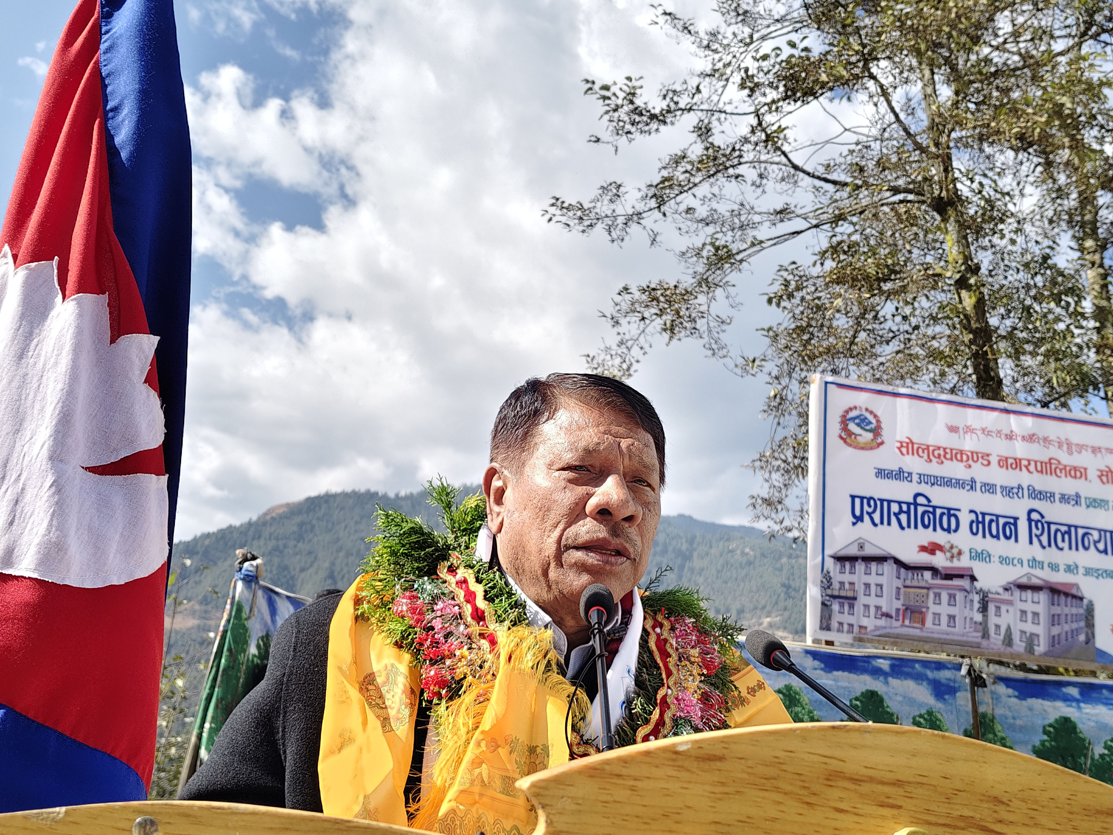 आज सोलु दूधकुण्ड नगरपालिकाको प्रशासनिक भवनको शिलान्यास गर्दै उपप्रधानमन्त्री सिंहले जथाभावी विकास निर्माण गर्न नहुने उल्लेख गर्दै प्रकृतिलाई कम हानी गर्दै विकास निर्माण गर्नुपर्ने धारणा राख्नुभयो ।