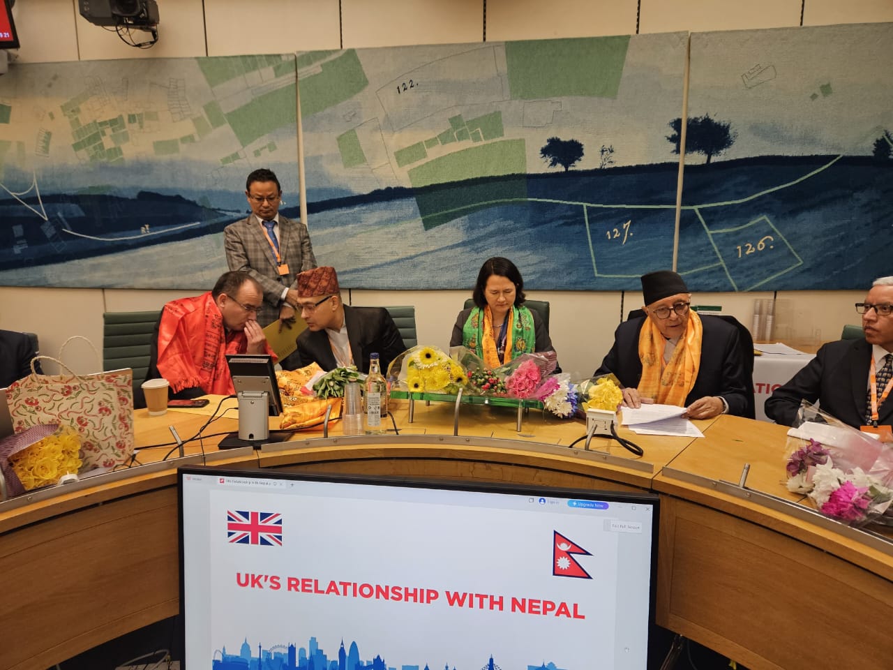 बेलायतको संसद् भवन (वेस्ट मिन्स्टर) मा आज आयोजित ‘नेपाल–बेलायत सम्बन्ध’ विषयक कार्यक्रमलाई सम्बोधन गर्दै उहाँले नेपाललाई विश्वसामु स्वतन्त्र र सार्वभौम राष्ट्र मान्ने बेलायतको उक्त कदमप्रति आभार प्रकट गर्नुभएको उहाँका प्रमुख स्वकीय सचिव दिनेशचन्द्र थपलियाले जानकारी दिनुभयो ।