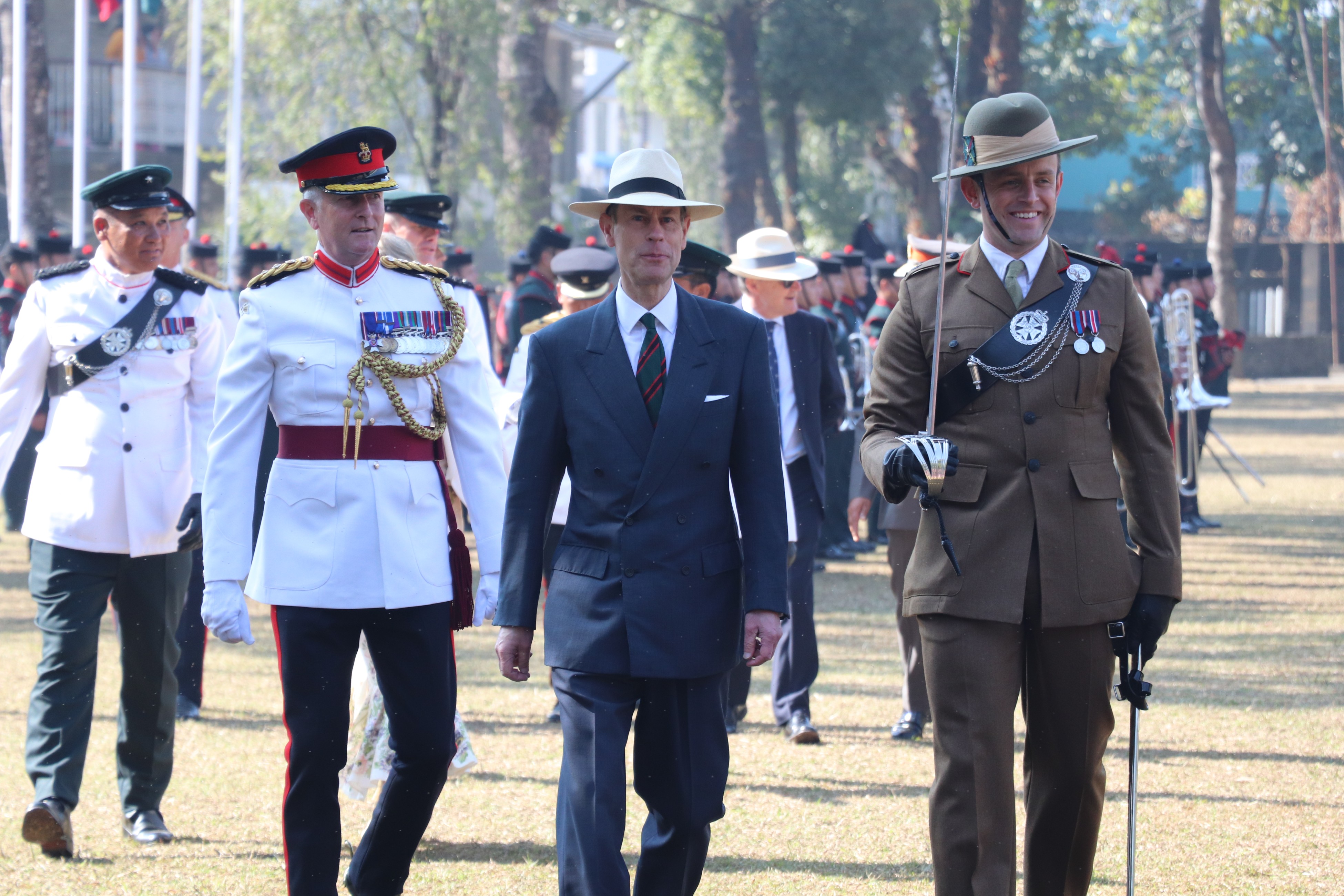 संयुक्त अधिराज्य बेलायतका अधिराजकुमार एडिनब्राका ड्यूक एड्वर्ड र अधिराजकुमारी डचेस सोफीले आज पोखरास्थित ब्रिटिस क्याम्पमा आयोजित कार्यक्रममा बेलायती सेनामा औपचारिक रुपमा सामेल भएका दुई सय ७४ नेपाली युवाले प्रस्तुत गर्नुभएको परेड अवलोकन गर्नुुभएको छ ।