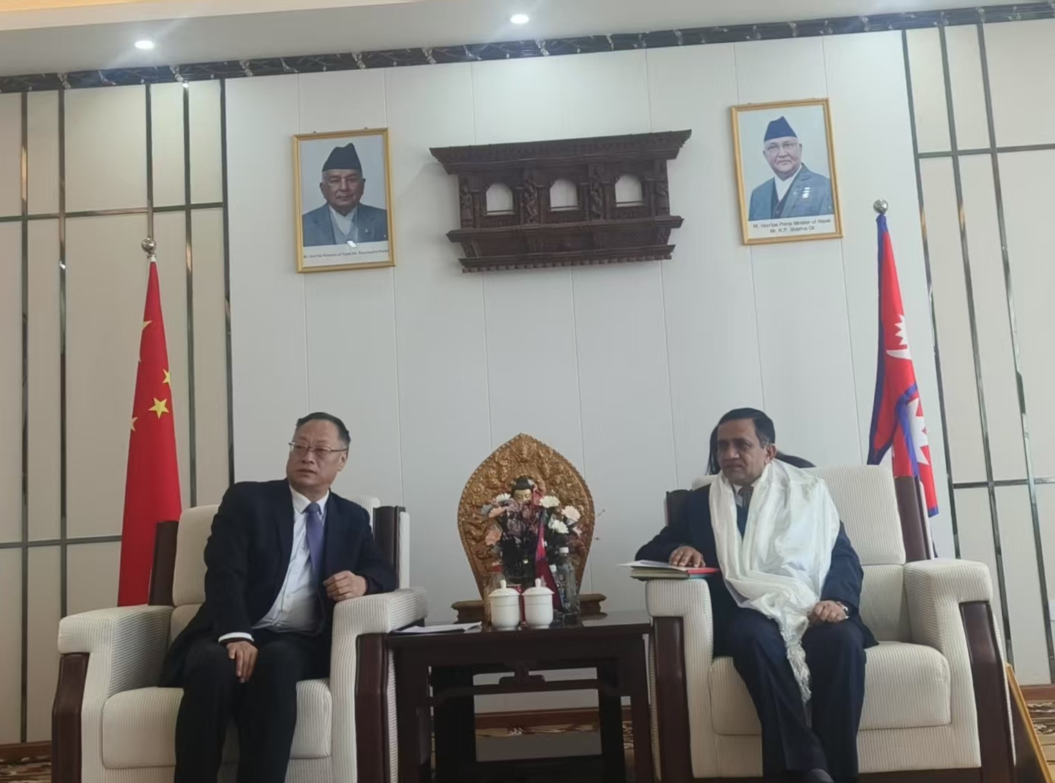 मित्रराष्ट्र चीनको सिजाङ स्वायत्त प्रदेशका वाणिज्य विभागका महानिर्देशक चेन जुन र नेपाली महावाणिज्यदूतावास ल्हासाका महावाणिज्यदूत लक्ष्मीप्रसाद निरौलाबीच आज महावाणिज्यदूतावासमा भेटवार्ता भएको छ ।