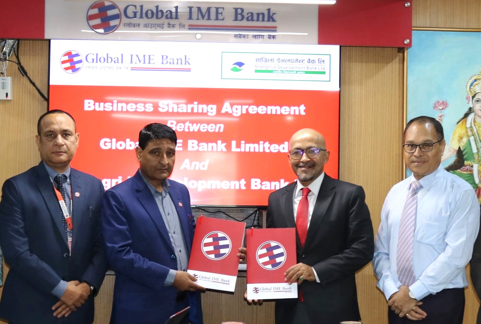 सम्झौतामा ग्लोबल आइएमई बैंकका प्रमुख कार्यकारी अधिकृत सुरेन्द्रराज रेग्मी र सांग्रिला डेभलपमेन्ट बैंकका प्रमुख कार्यकारी अधिकृत सुयोग श्रेष्ठले हस्ताक्षर गर्नुभएको हो।