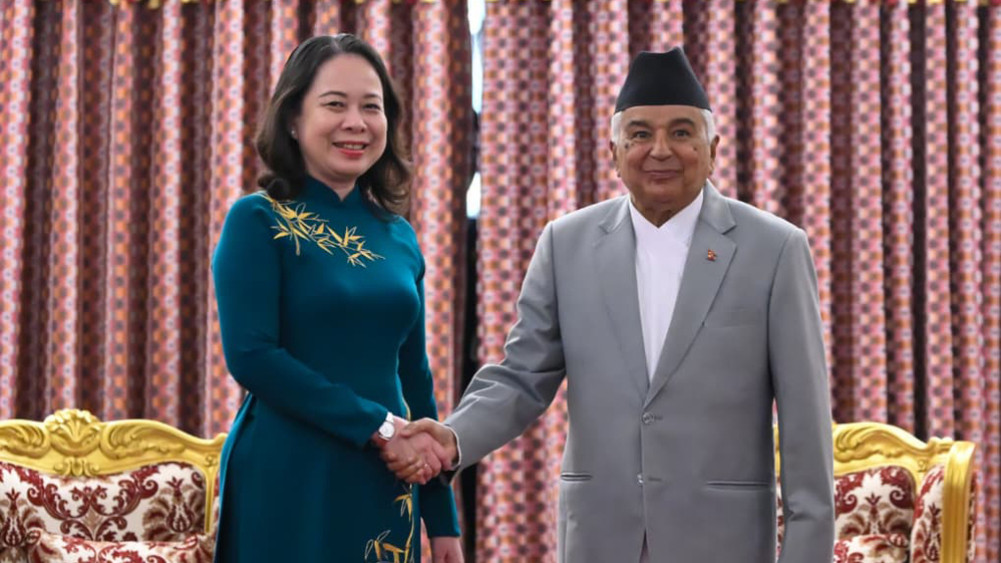 राष्ट्रपति रामचन्द्र पौडेलसँग नेपाल भ्रमणमा रहेकी समाजवादी गणतन्त्र भियतनामका उपराष्ट्रपति वो थि आन्ह सुआनले आज शिष्टाचार भेट गर्नुभएको छ।