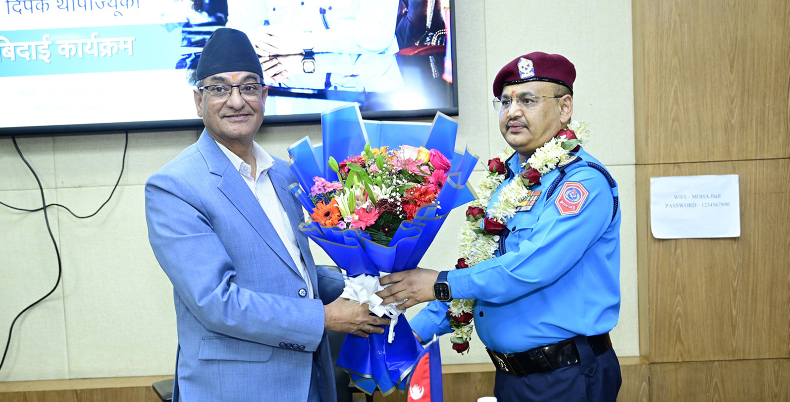 गृहमन्त्री रमेश लेखकले सेवानिवृत्त हुन लागेका प्रहरी महानिरीक्षक दिपक थापालाई शुभकामना सहित बिदाइ गर्नुभएको छ।