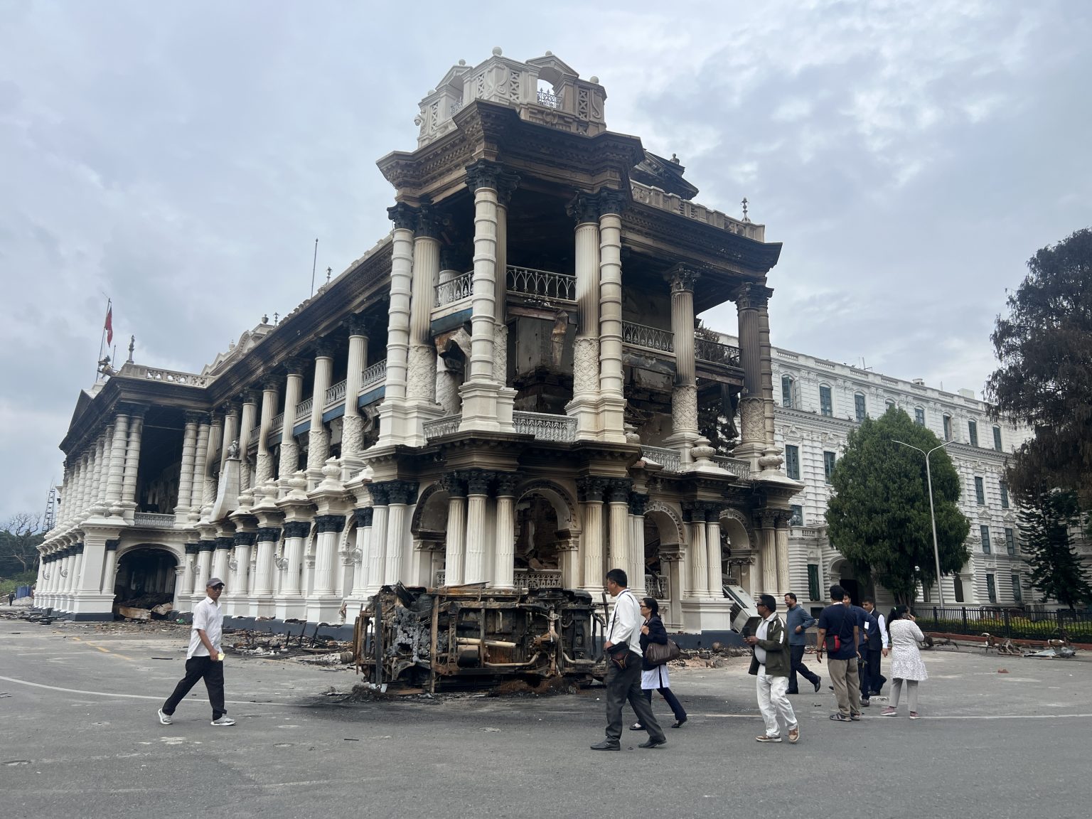 सिंहदरबार आगजनी र तोडफोडले कुरुप बनेको छ। भग्नावशेषमाथिको झण्डाले साँच्चिकै फेरि राष्ट्रिय एकतासहित उठ्नुपर्छ भन्ने भाव बोलिरहेझैँ लाग्छ। धुवाँधुवाँ बनेका सिंहदरबारको भित्ताहरुका कला कौशलले पुनर्निर्माण पर्खिरहेका छन्। आकर्षक शिल्पी र कला धुँवाको पोतोले लतपतिएका छन्। सिंहदरबारको तस्बिर कैद गरिरहनुभएकी कानुन व्यवसायी देवमाया घिमिरेले भन्नुभयो, “सिंहदरबार जलेको दृश्यले मन जलायो। हृदय भारी भयो। भवनको तस्बिर कैद गर्दा आफैँलाई बिझेजस्तो भयो। यो सबै दृश्य शब्दमा विश्लेषण गर्न सकिँदैन।”