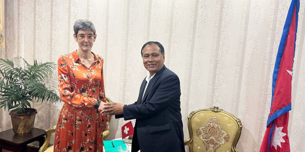 ऊर्जा, जलस्रोत तथा सिँचाइमन्त्री कुलमान घिसिङ र नेपालका लागि स्वीट्जरल्याण्डका राजदूत डेनिएल मेउलीबिच शिष्टाचार भेटवार्ता भएको छ।