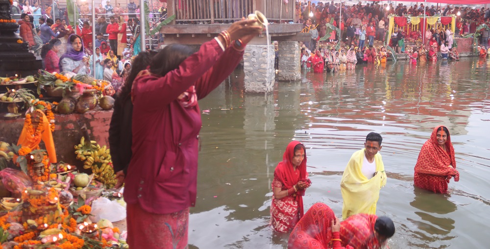 कात्तिक शुक्ल चतुर्थीदेखि सप्तमीसम्म मनाइने सूर्यदेवको आराधना, उपासना र पूजाको पर्व शनिबारदेखि सुरु भएको हो। चतुर्थीमा स्नान गरी चोखो खाएर बसिन्छ। यस दिनबाट छठ नसकिएसम्म व्रतालुले माछा, मासु, लसुन, कोदो, फापर, मुसुरो, आदि नखाने विधि छ। कार्तिक शुक्ल सप्तमीका दिन अर्थात् आज बिहान उदाउँदो सूर्यलाई पूजासहित अर्घ दिएपछि यो पर्व सम्पन्न भएको हो।