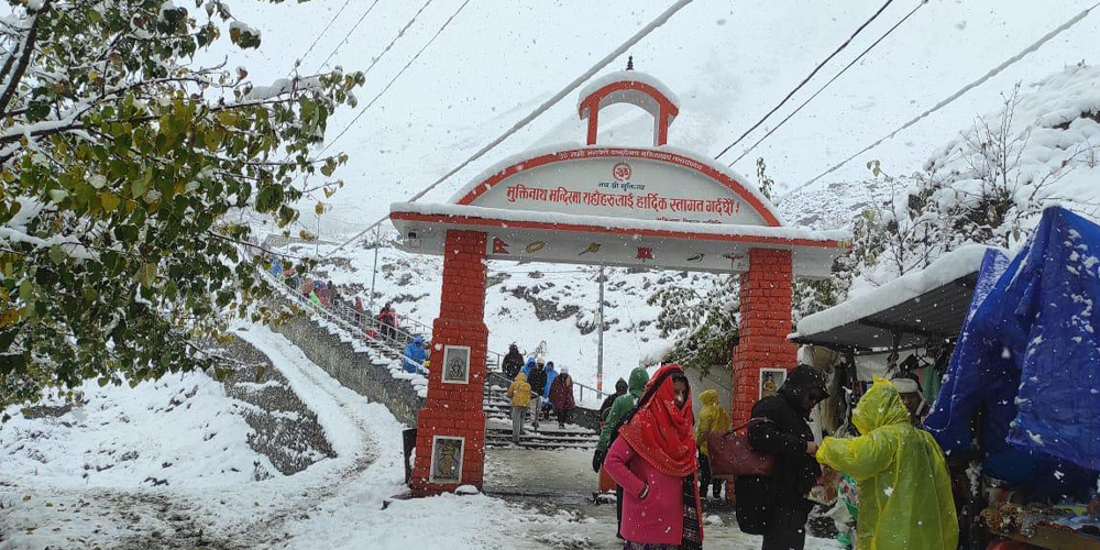 प्रसिद्ध धार्मिकस्थल मुक्तिनाथ मन्दिर र त्यसआसपासका क्षेत्रमा हिउँ पर्ने क्रम रोकिएको छैन। वारागुङ मुक्तिक्षेत्र–३ छुसाङदेखि तल्लो क्षेत्रका बस्तीमा निरन्तर वर्षा भइरहेको छभने बस्तीदेखि माथिका उच्चलेकमा हिउँ परेको छ। मनाङ हुँदै थोरङलापास पदमार्ग, जोमसोम, ठिनी हुँदै तिलिचो जाने नमुखलेकदेखि मेसोकोन्दो पास पदमार्ग र धौलागिरि आइसफलको धम्पुस पिक पदमार्गलगायत स्थानमा बाक्लो हिउँ पर्दा पदमार्ग अवरुद्ध भएका छन्।