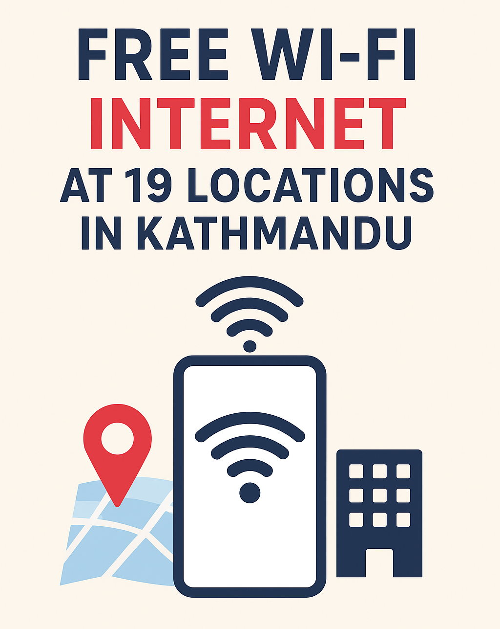 काठमाडौँका विभिन्न १९ सार्वजनिक स्थानमा अबदेखि निःशुल्क वाइफाइ इन्टरनेट उपलब्ध हुने भएको छ। सञ्चार तथा सूचना प्रविधिमन्त्री जगदीश खरेलको पहलमा विभिन्न अस्पताल, पशुपतिनाथ मन्दिर क्षेत्र परिसर, विमानस्थलका साथै संवेदनशिल, महत्वपूर्ण र सार्वजनिक सेवा प्रवाह हुने क्षेत्रमा निःशुल्क वाइफाइ इन्टरनेट सेवा विस्तार भएको हो।