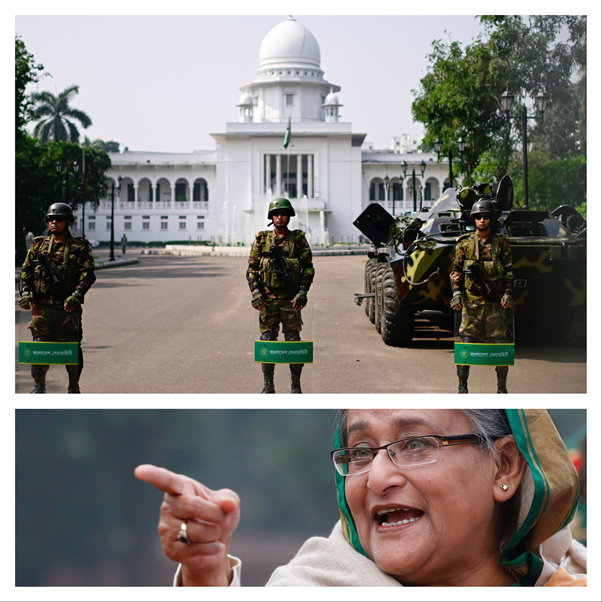 हसिनाको अवामी लिग पार्टीले विशेष न्यायाधिकरणलाई ‘कङ्गारू अदालत’ भन्दै आह्वान गरेको देशव्यापी बन्दपछि ढाका तथा अन्य ठाउँमा अर्धसैनिक सीमा रक्षक तथा प्रहरी बल तैनाथ गरिएको छ।