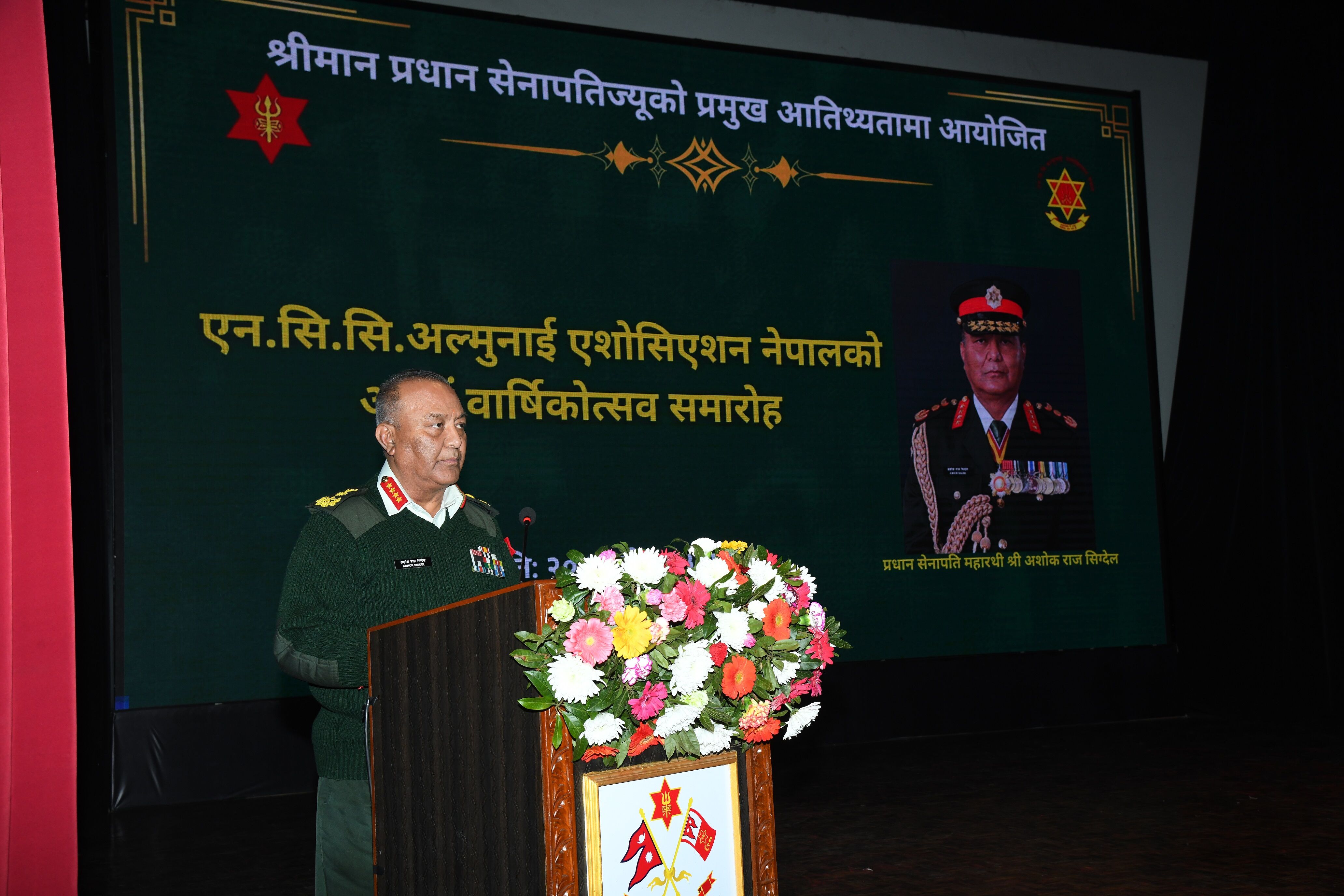कार्यक्रममा राष्ट्रिय सेवा दल, नेपालका सह संरक्षक समेत रहनु भएका प्रधान सेनापतिले राष्ट्रप्रति समर्पित अनुशासित, नैतिकवान्, इमानदार र कर्तव्यनिष्ठ नागरिक तयार गर्न राष्ट्रिय सेवा दलले वहन गरेको उल्लेखनीय भूमिकाको प्रशंसा तथा NCC Alumni Association Nepal सँग आबद्ध सबैलाई वहाँहरूले पुर्याउनु भएको योगदानको कदर गर्दै वार्षिकोत्सवको अवसरमा शुभकामना व्यक्त गर्नुभयो।