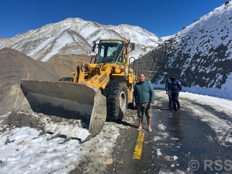 वारागुङ मुक्तिक्षेत्र–४ का वडाध्यक्ष कर्माघ्याचो गुरुङको उपस्थितिमा अवरुद्ध कागबेनी–मुक्तिनाथ सडकको हिउँ सफा गर्ने काम सुरु गरिएको छ। यसका लागि आयोजनाको डोजर कागबेनी–मुक्तिनाथ सडकको बाक्लो हिउँ पन्छाउन त्यसतर्फ पुगिसकेको आयोजना प्रमुख तेजस्वी शर्माले जानकारी दिनुभयो।